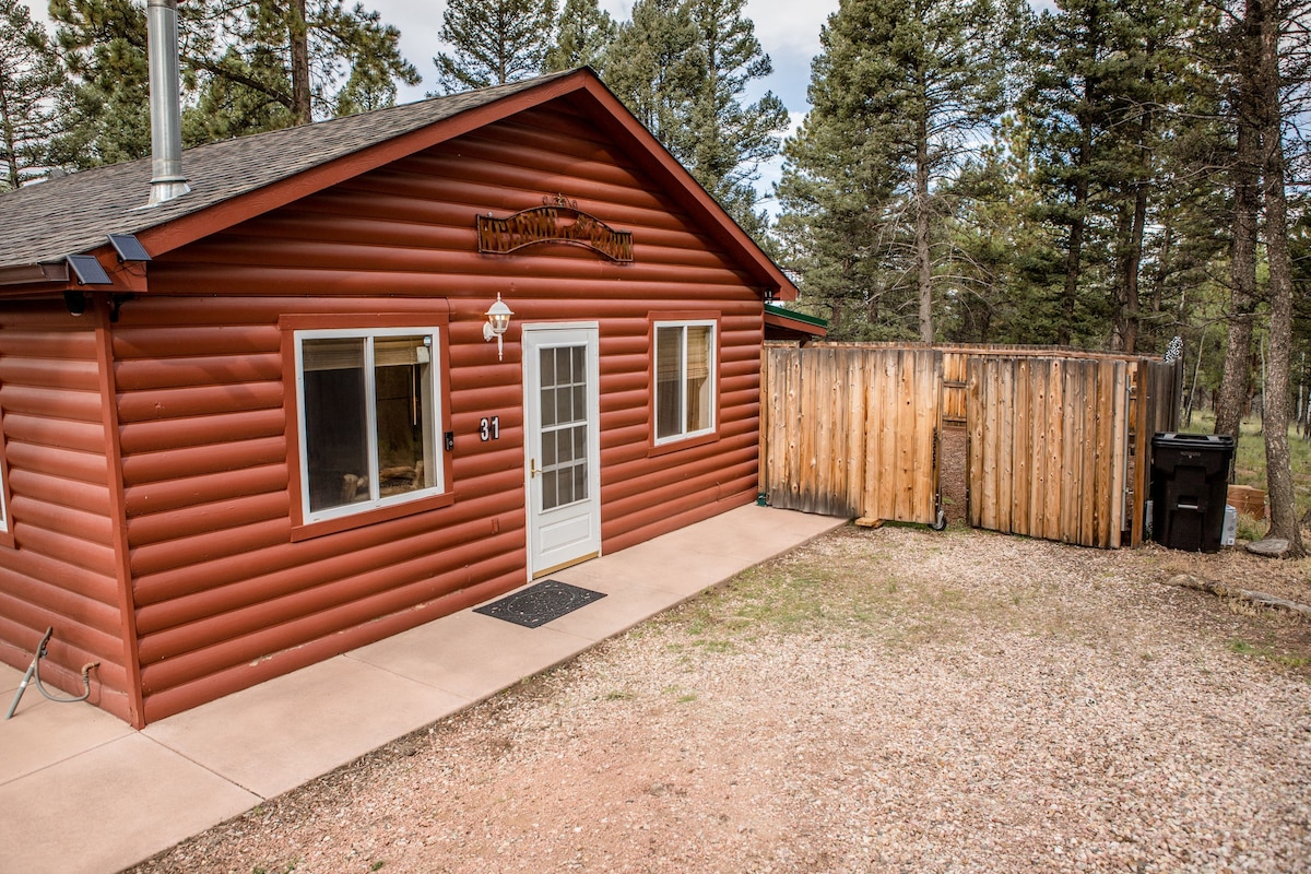 Verscholen in het rustige berglandschap, maar op slechts enkele minuten van het charmante stadje Florissant, is deze 500 vierkante voet, 1-slaapkamer, 1-badkamer hut de perfecte balans tussen stijl, comfort en gemak. Binnen vind je een zorgvuldig ontworpen interieur dat vintage meubels combineert met eclectische, unieke accenten. De goed uitgeruste keuken is voorzien van een oven, koelkast en magnetron. • een eenvoudige dagtocht naar historische bergplaatsjes, schilderachtige zijwegen en avontuurlijke buitenplekken