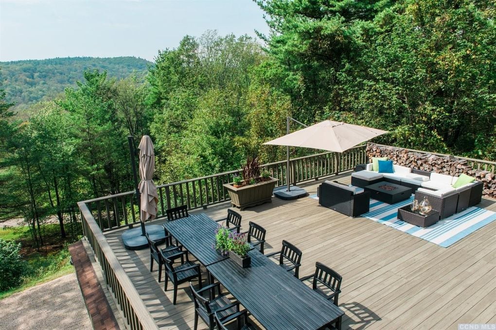 Recently renovated chalet-style home located in Copake New York 10 minutes from Copake Lake. Modern design meets country living. Centrally located with access to the Berkshires, Hudson, Catamount Ski Resort, Bash Bish recreation area and more! This 3-bedroom, 2-bath home sits on 3.5 acres of landscaped grounds with beautiful western views, garden patio, wrap-around deck, fire pit, modern amenities, central air, and outdoor games. Set back from the road, the property is private and secluded.