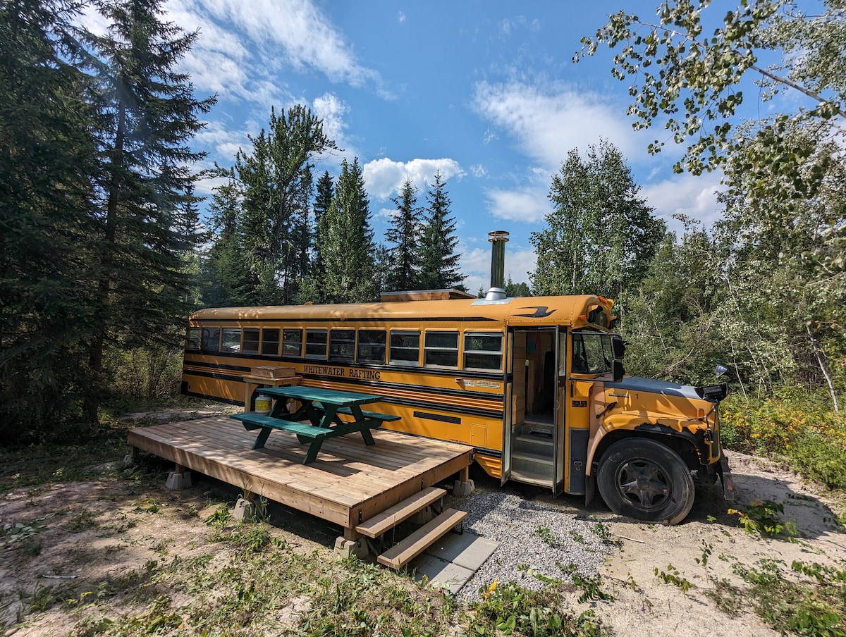 Welkom bij Sleepy Bear Skoolie, waar je een authentieke omgebouwde schoolbus ervaart in het hart van de Canadese Rockies. Dit is geen glamping, maar echt off-grid leven met beren, herten en andere bosbewoners als je dagelijkse metgezellen. 🏕️ ECHT OFF-GRID WILDERNISAVONTUUR - ❌ douche, ❌ wifi, ❌ mobiele service, ontmoetingen met ✅ wilde dieren gegarandeerd!