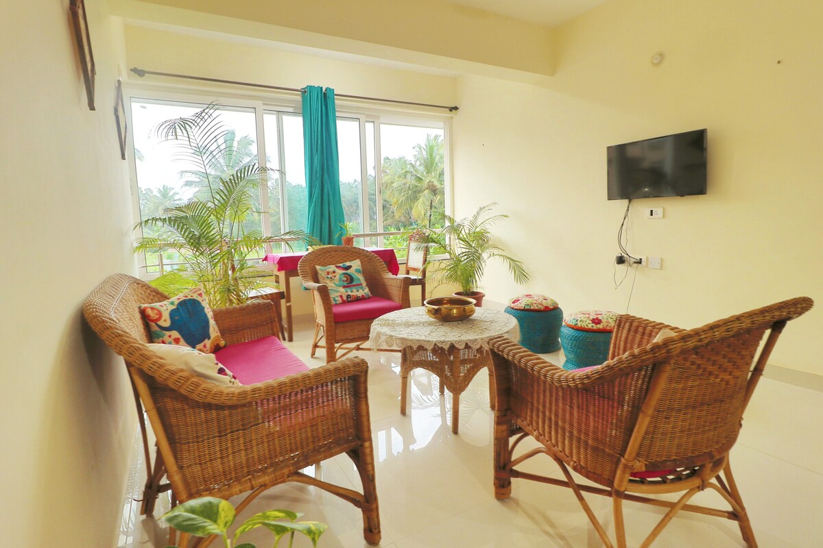 Ontspan en voel rust in je! Een perfect familie-uitje. Kom bij ons verblijven om je nog beter te voelen dan thuis. Geniet van de ononderbroken wifi-connectiviteit met een volledige back-up van stroom. Kom binnen als gasten en vertrek als familie. Geschikt voor jouw gemoedsrust in het gezellige AC appartement!Bereid een snelle snack of ga naar de strandhutten.Spring in het zwembad of neem een duik in de zee 🌊 Ga hardlopen op het strand of ga naar de volledig uitgeruste fitnessruimte ! Ontdek het unieke karakter van South Goa en heb een rustig verblijf 😎