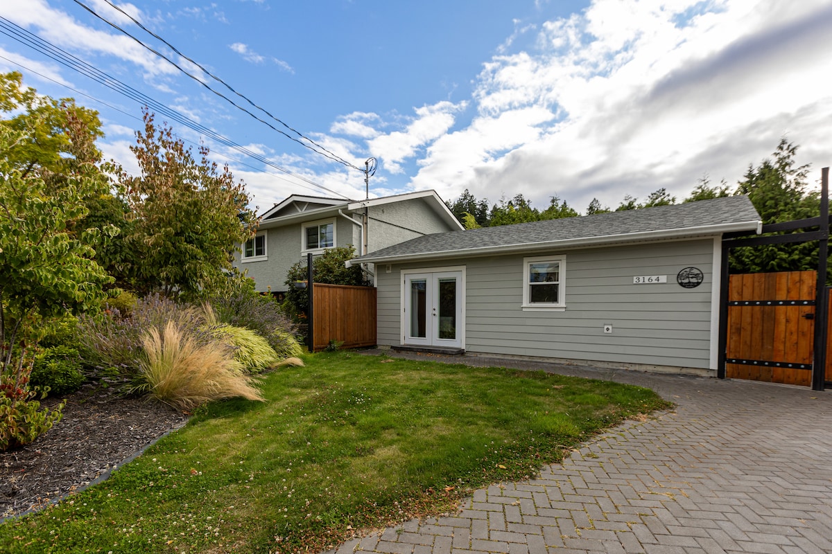Begane grond 1-slaapkamer privé gastsuite. Gelegen in een rustige buurt aan een privéstraat. Biedt een volledige keuken met vaatwasser, 4-delige badkamer met wasmachine en droger, queensize bed en een queensize slaapbank. 25 minuten van het centrum van Victoria, minuten van het centrum van Westshore, stranden, parken en wandelpaden. Perfect voor de professional, koppels of reizigers die alles willen ervaren wat de grotere Victoria, Cowichan en Sooke-gebieden te bieden hebben.