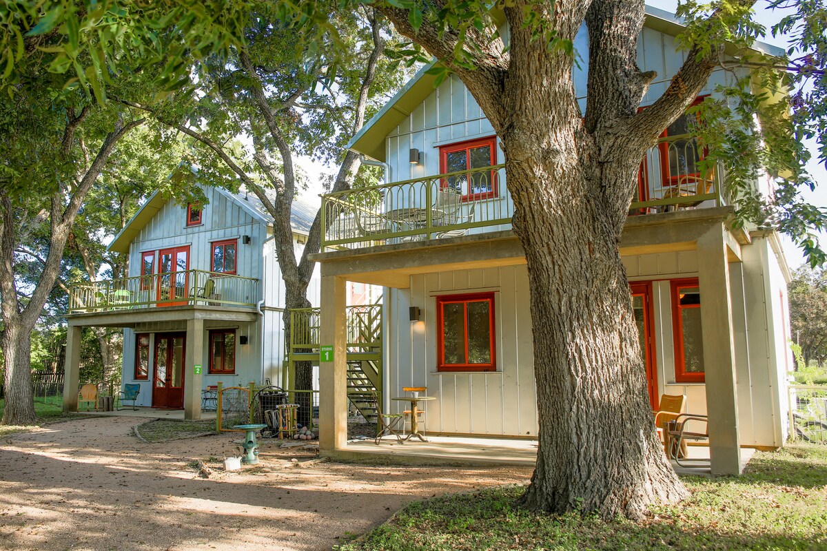 Prachtig en comfortabel, dit prachtige uitje ligt in het hart van Texas Hill Country, een mijl ten zuiden van Guadalupe St Park en naast het prachtige Park 31 trouwlocatie. Wij zijn enkele minuten van kleine steden en een grote stad die unieke en multiculturele ervaringen, winkels, restaurants en recreatie biedt. Guadalupe River Park is eenvoudig bereikbaar en biedt waterrecreatie, kamperen en dagwandelingen. Als werkende paardenranch geniet je van de nauwe interacties met onze dieren!