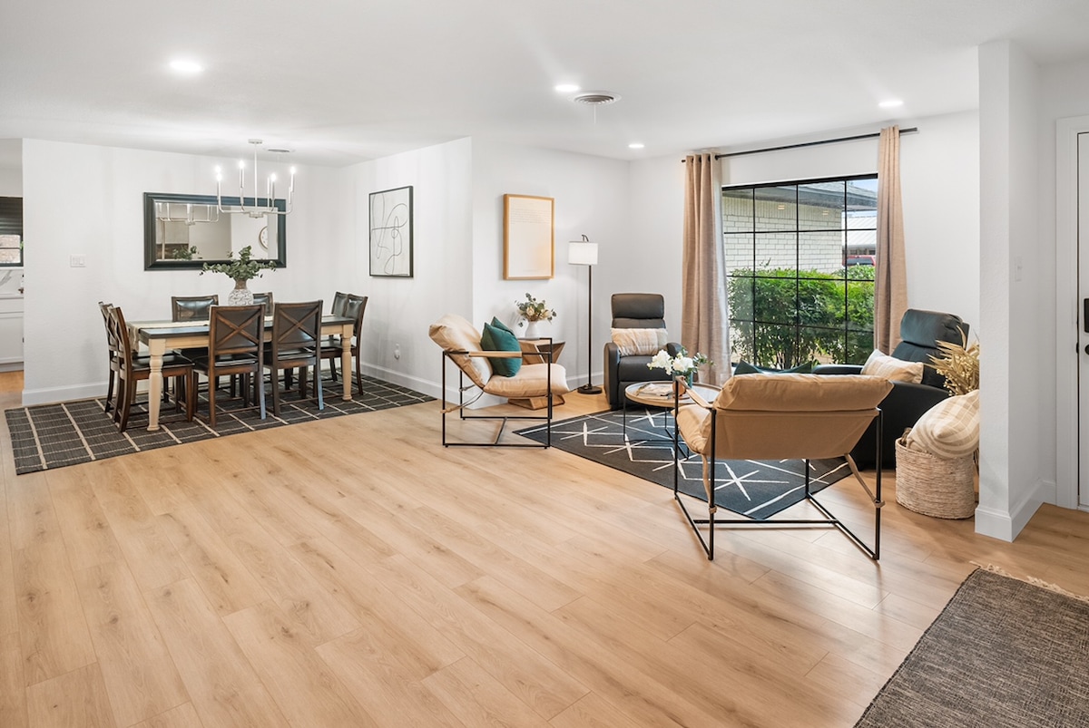The whole family can kick back and relax at this beautiful home away from home! Completely renovated and freshly decorated from plush towels to luxurious linens, you won't be disappointed. Enjoy 3 spacious bedrooms, 2 bathrooms and a kitchen complete with everything you need to cook a delicious meal. Snuggle up on the cozy sofa by the fireplace for a movie on the Smart TV or challenge each other to a ping pong game in the garage. You might also enjoy a walk in this peaceful neighborhood.
