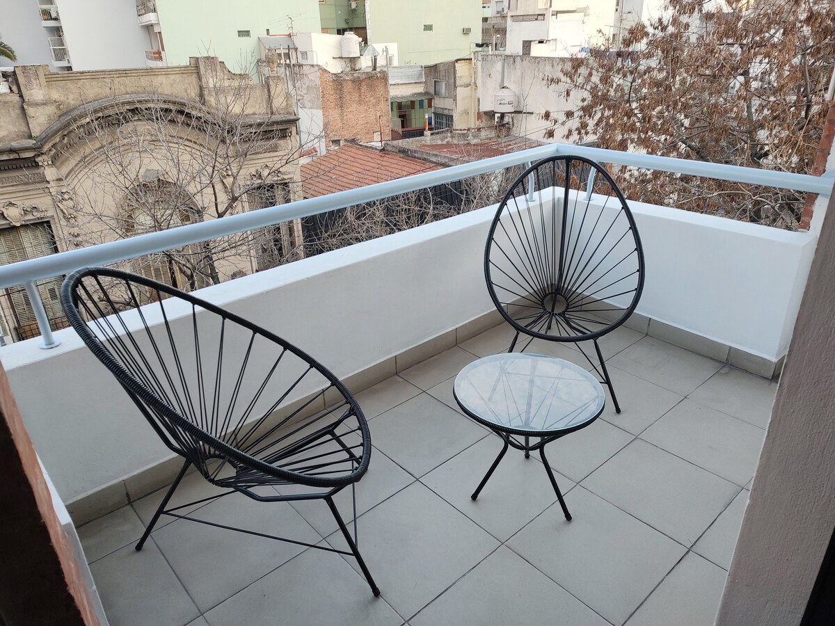 Comfortabel 3-kamerappartement in Caballito, dicht bij belangrijke gastronomische, residentiële en studentencentra. - 2 slaapkamers - Capaciteit voor 4 personen -2 volledige badkamers, beide met douche (1 en-suite + 1 badkamer voor gasten) - vaatwasser - HDTV, Netflix -Wifi -Escritorio - Heladera/vriezer - Airconditioners (slaapkamer + woonkamer) - Balkon aan de voorkant - Volledige keukenapparatuur: magnetron, waterkoker, koffiezetapparaat, handmatige sapcentrifuge.