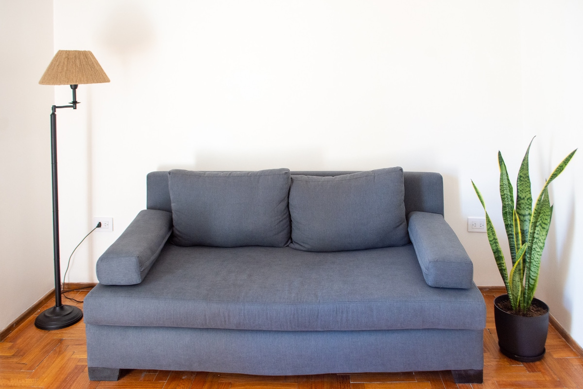 Enjoy a unique experience in a prime location. Ideal for couples and families looking for a serene and cozy atmosphere, perfect for relaxing and enjoying the tranquility of the neighborhood. Its large windows flood the space with natural light, and the balcony with open views invites you to enjoy an unforgettable stay. Located near the subway and bus lines, you'll have quick access to all corners of the city. A refuge in Buenos Aires to make you feel at home. ✨