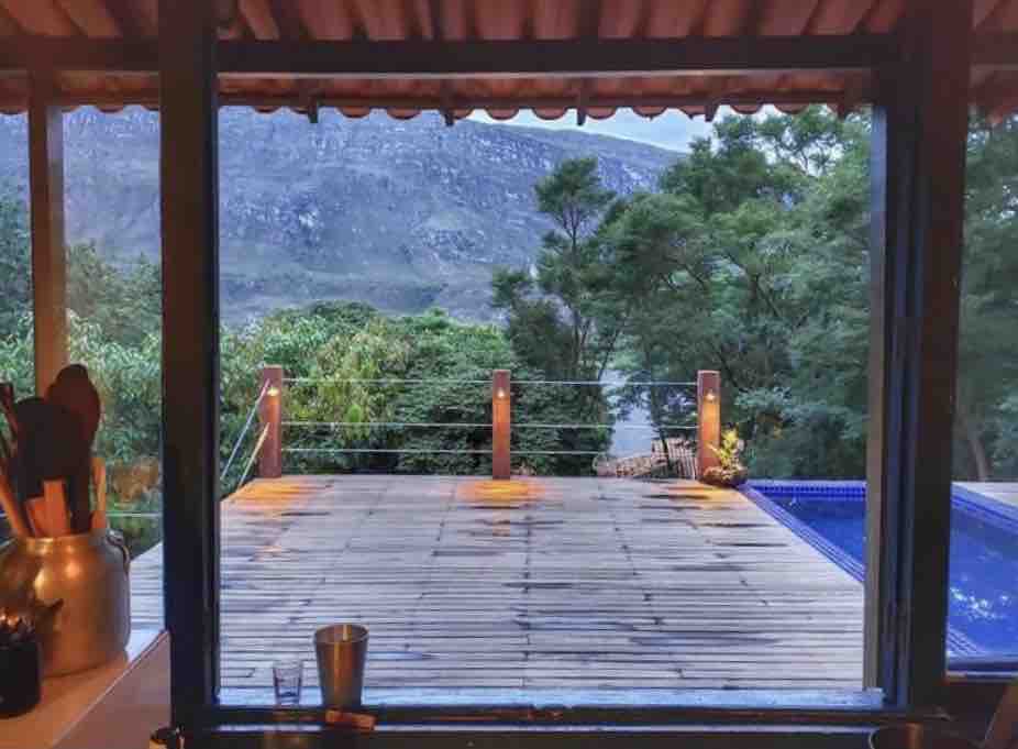 ** PRACHTIG UITZICHT SERRA!!! Geheel huis in Lapinha da Serra-MG, met balkons, terras, zwembad en bevoorrecht uitzicht op de bergen op slechts 5 minuten lopen van het dorp. - 3 kamers zijn 2 suites + 1 slaapkamer met eenpersoonsbedden -Banheiro social -Cozinha compleet met externe vriezer en Airfryer - Dag voor wijnen - Kamer met open haard - tv-kamer met LUCHT en dvd - Zijbalkon met tafel en houtkachel - Balkon met terras en zwembad - buitendouche - Draagbare barbecueplek -Van harte welkom!