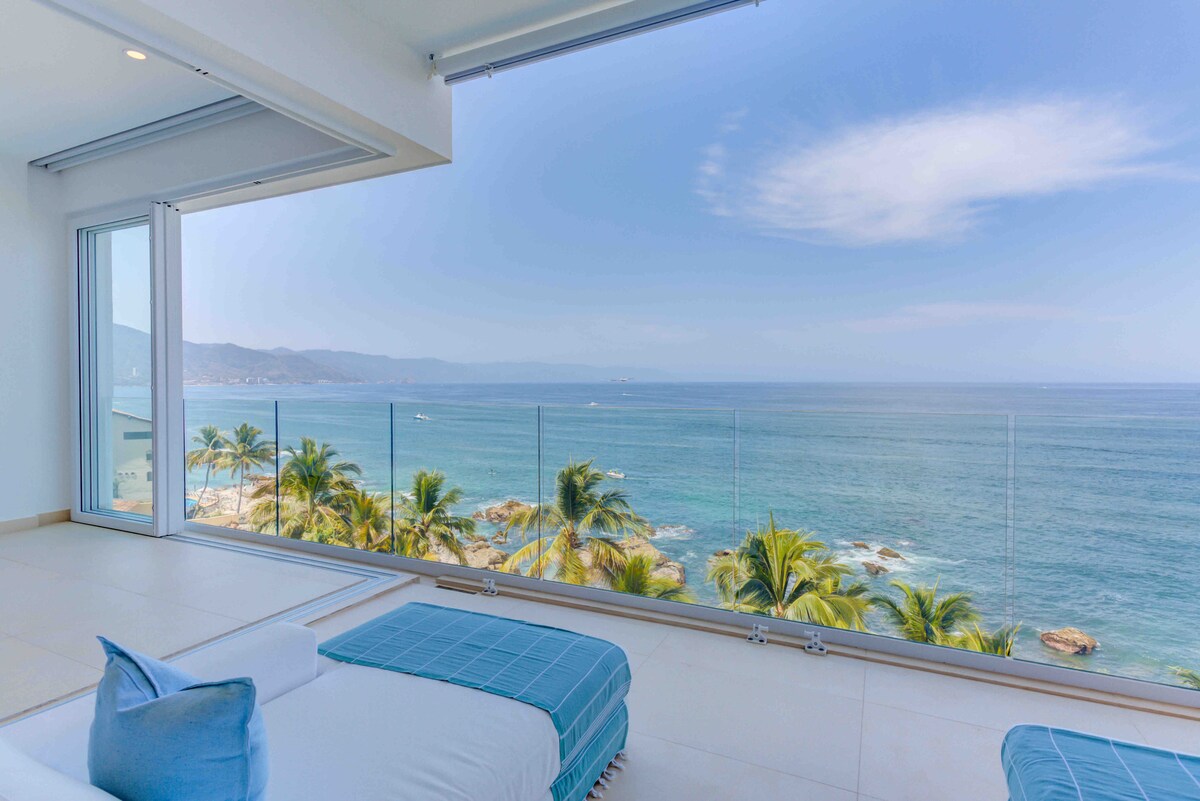 Ongelooflijke locatie aan de oceaan! Ontworpen met jou in gedachten, is het het perfecte uitje voor twee met uitzicht op de oceaan vanuit alle hoeken, inclusief de douche! Kenmerken omvatten airconditioning, luxe multi-spray douche, kingsize bed met traagschuimmatras en weelderig 100% biologisch katoenen beddengoed, chique en stijlvolle woonkamer met op maat gemaakt ligbed, 43inch 4K smart-tv, WIFI en Bose-geluidssysteem, prachtige keuken en eethoek, plus 265 m ² eigen buitenruimte op steenworp afstand van Los Muertos Beach.
