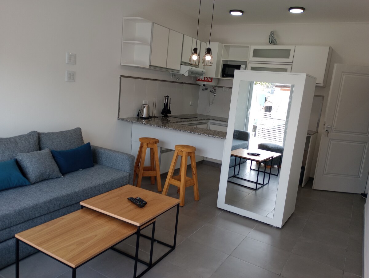 Je vindt er een ruime, lichte mono-enacing omgeving in de buurt van het centrum. Het ligt op 6 blokken van het voetgangers- en commerciële gebied. Slechts 3 blokken van de kustlijn. Een grote ruime omgeving met een aparte en volledig uitgeruste keuken, complete badkamer, een groot balkon naar de straat, airconditioning, kabel-tv en alles wat je nodig hebt om een comfortabel en aangenaam verblijf te hebben. Supermarkten, kiosken, restaurants, bars, enz. in de buurt restaurants, restaurants, restaurants, bars, enz.