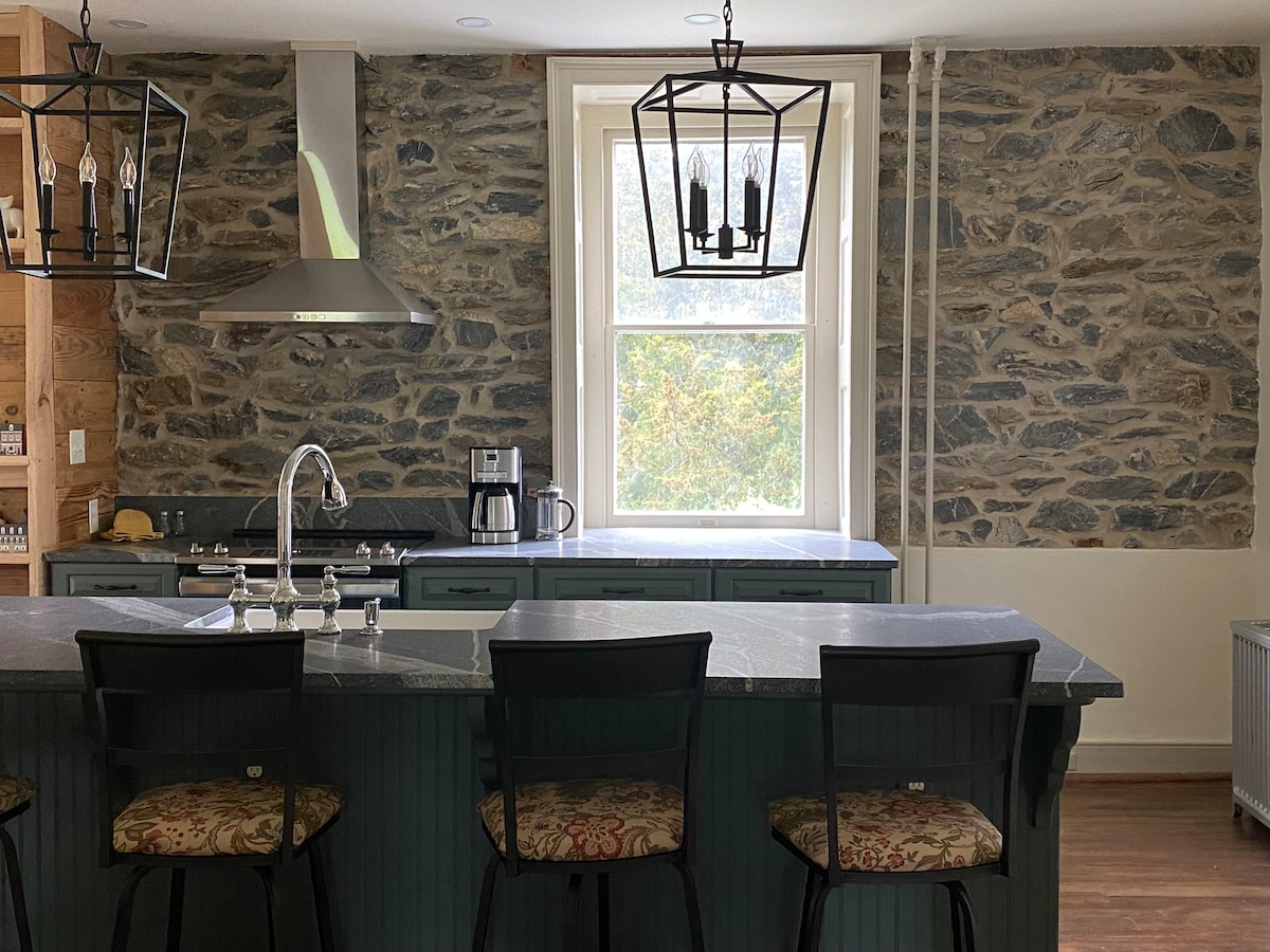 Maak deel uit van de geschiedenis tijdens een verblijf op dit terrein aan het water van het Ironmaster 's Mansion. Het stenen pension met twee verdiepingen, op een steenworp afstand van het landhuis, werd gebouwd in het jaar 1715. Het tijdloze karakter van de woning, gecombineerd met de rustige accommodatie, creëert een ontsnapping die voelt alsof je terug in de tijd bent gegaan, terwijl je slechts 20 minuten buiten Lancaster City bent. Het landhuis was de thuisbasis van de dochter van de eerste penningmeester van de VS, generaal Edward Hand, en de verloofde van president Buchanan.