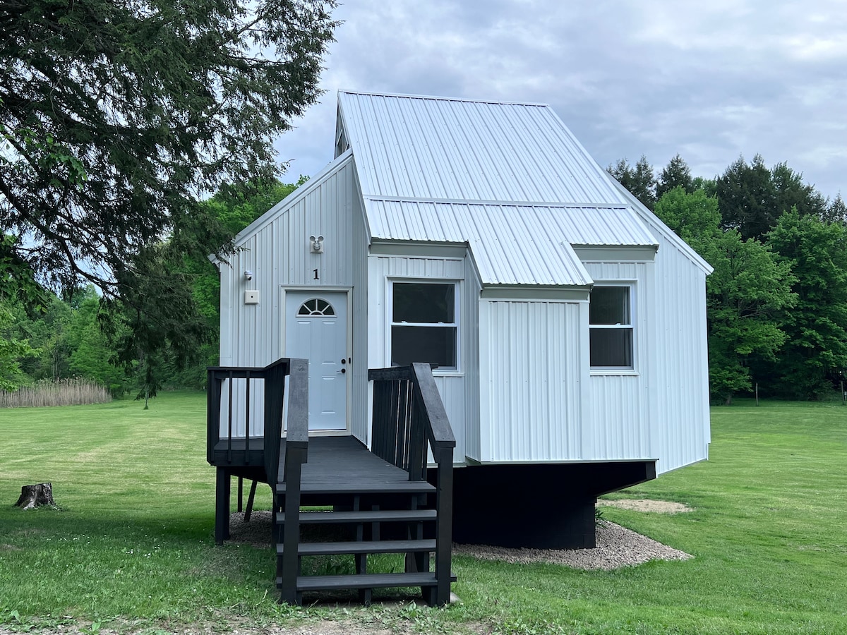 Onlangs gerenoveerd chalet genesteld op 15 hectare binnen enkele minuten van Conneaut Lake, Firemans Beach, Icehouse Park, Barbara J Cruises, Conneaut Cellars Winery, restaurants, koffiebar, cadeauwinkels en nog veel meer. Er zijn 6 chalets op het terrein. Wasserij en gratis parkeren op het terrein. 15 minuten van Meadville. Elk chalet heeft een slaapkamer op de eerste verdieping met volledig bed, badkamer op de eerste verdieping, keuken, woonkamer, een loftslaapkamer met queensize bed en een achterdek met uitzicht op de vijver.