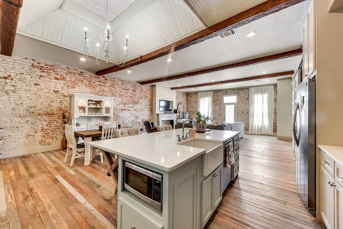 Deze luxe loft in een kleine stad met uitzicht op Main Street plaatst je in het centrum van alles wat het North Texas Hill Country te bieden heeft - op slechts 1,5 uur van DFW! Speel een rondje golf of bezoek een wijngaard en ontspan in je chique en comfortabele 'thuis weg van huis'." Een open indeling, blootliggende baksteen en zonlicht dat door historische ramen stroomt, zullen zeker indruk maken. Of je nu op zoek bent naar een romantisch uitje, een zakenretraite of een onvergetelijke vakantie, The Loft at 113 is de perfecte keuze!
