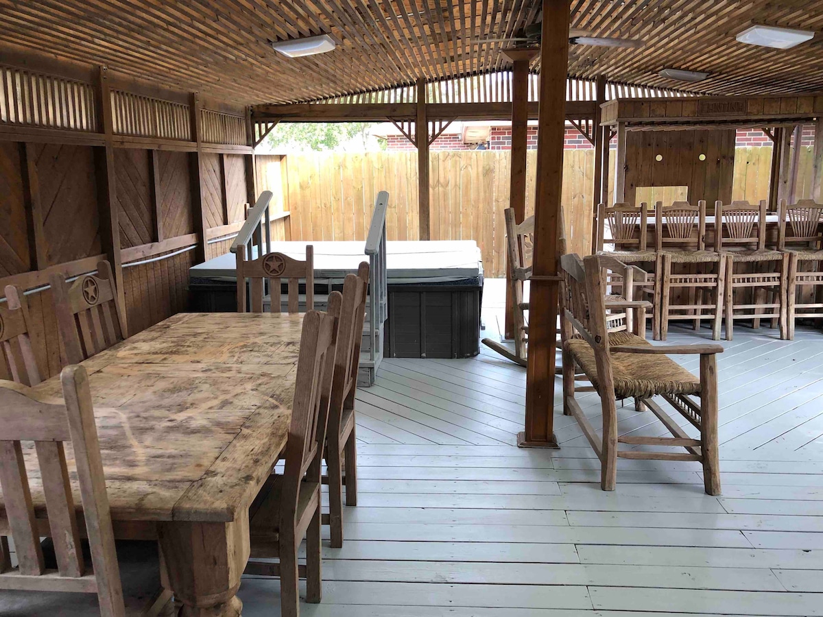 Dit is een prachtige, ruime woning met alle gemakken voorzien. Het ligt op een ideale locatie, dicht bij het beste dat Corpus Christi te bieden heeft: 10 minuten naar het strand van Padre Island, 2,2 mijl naar Texas A&M CC University, Bay Area Hospital, 15 minuten naar Downtown en meer! Ontspan en ontspan in meer dan 2700 vierkante meter leven of breng tijd door met barbecueën buiten met uitzicht op onze voormalige golfbaan. Geweldig huis voor grote groepen, entertainment en ontspannen!