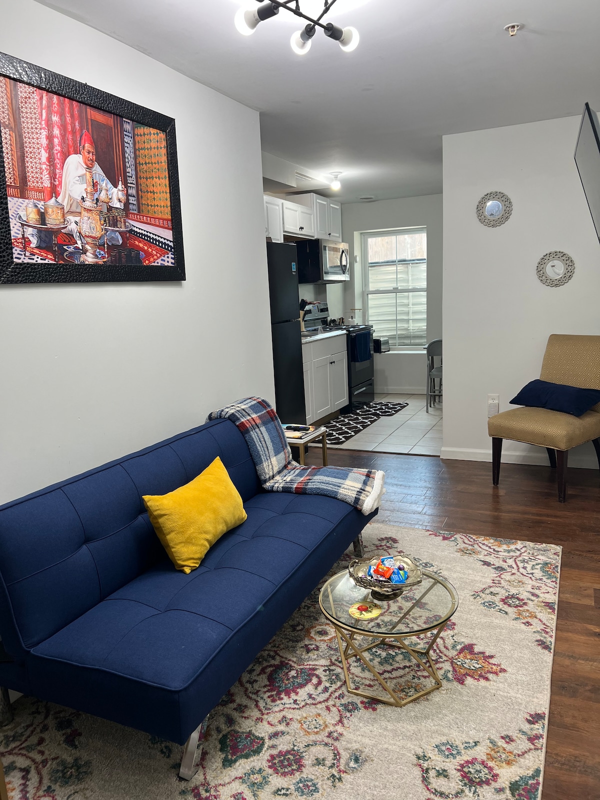 Tik op de knop ❤️ 'Opslaan' in de rechterbovenhoek, zodat je ons gemakkelijk weer kunt vinden voordat je datums zijn geboekt. Licht, stijlvol appartement op slechts 15 mijl van het centrum van Washington, DC, ontworpen voor comfort, privacy en gemak. De ruimte biedt plaats aan maximaal 4 gasten met een kingsize bed en queensize slaapbank, waardoor het ideaal is voor stellen, kleine gezinnen, zakelijke reizigers of vrienden die op zoek zijn naar een rustig toevluchtsoord met gemakkelijke toegang tot de stad.