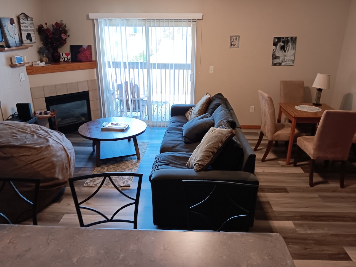 Centraal gelegen, in de buurt van een bushalte, fietspaden en winkels, heeft dit ruime appartement 2 slaapkamers, 1,5 badkamers en een extra gastenslaapbank beneden. Met een speciale werkplek kun je weg van huis werken. Ontspan op het buitendek of ga voor de 65-inch tv zitten om naar je favoriete streamingdienst te kijken. 's Ochtends geniet je van het volledig uitgeruste koffiezetapparaat. Een wasmachine en droger bevinden zich beneden, evenals een garage voor twee auto 's.