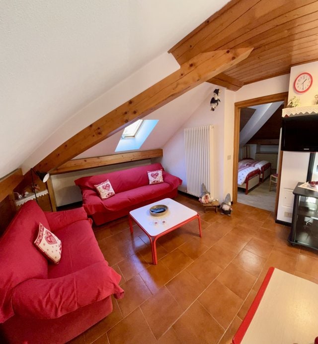 Een zolder, in een 17e-eeuwse schuur op 1500 meter, met uitzicht op de bergen en gerenoveerd in 2023 met oude bossen en lokale stenen. Het appartement bestaat uit een eethoek met een uitgeruste keuken, evenals een grote woonkamer met een open haard en een grote slaapbank, een comfortabele badkamer met een douche en een 'toevluchtsoord' met 2 extra bedden. De accommodatie is perfect voor een stel, maar het is ook geschikt voor een gezin met 2 kinderen, maar niet voor 4 volwassenen. 025044-LOC-00301 - IT025044C2U74B4BTG