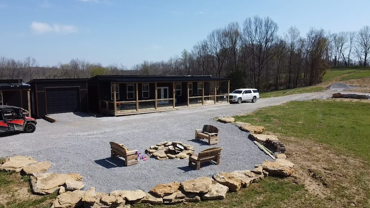 Ontdek de charme van onze rustieke containerhut op een beboste heuvelrug van onze familieboerderij. Vers geschilderde buitenkant - hetzelfde comfortabele interieur. 30 minuten naar Ark Encounter. Ontspan op de veranda bij zonsondergang onder snoerlichten, geniet van de vuurplaats en grill en adem frisse Kentucky-lucht in terwijl je 200 hectare heuvels en paden verkent. Binnen: vintage boerderijaccenten, comfortabele bedden met traagschuim, efficiënte kitchenette, verwarming/airconditioning en een uniek bad. Een rustige uitvalsbasis voor de Ark en Boutbon Trail. Een echte vakantieboerderij in Kentucky.