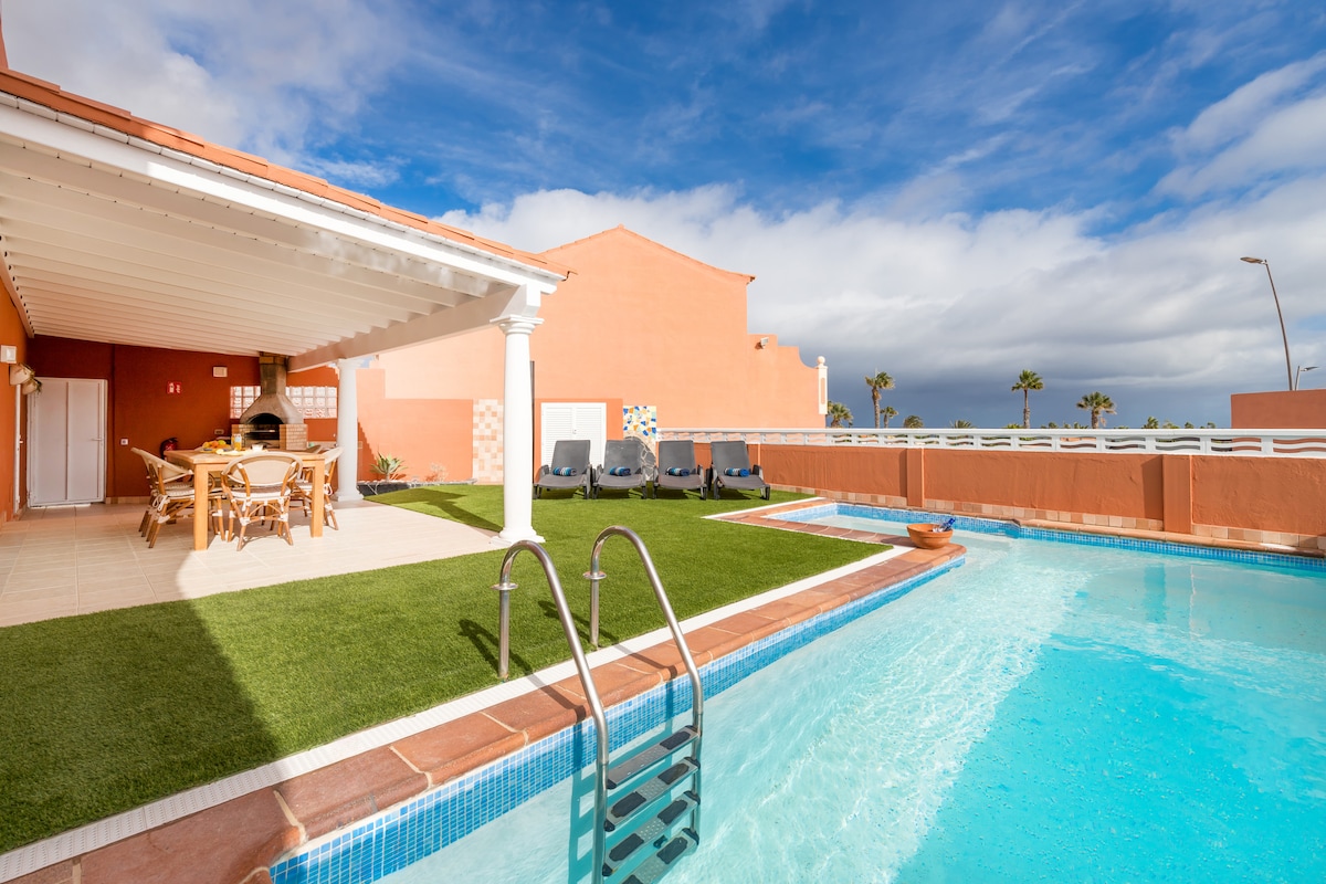 Orange light es una estupenda villa completamente reformada y nueva en Corralejo ! Deseas una escapada romantica con tu Pareja ? O simplemente unas vacaciones familiales con todas las comodidades que te harán sentir como en casa o incluso, mejor...? Gracias a su jacuzzi 5 plazas, su piscina Infinity climatizada y de sal, su barbacoa y su comedor exterior, has encontrado el alojamiento ideal !