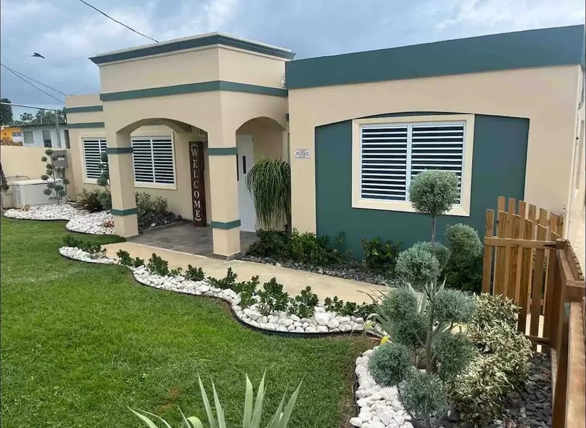 Nieuw in Aguadilla - Prachtige renovatie en op 10 minuten van alles! Dicht bij stranden, luchthaven en de #2. Deze woning heeft een rustige tuin met een badkuip, een complete keuken en een grote slaapkamer met een kingsize bed en een eigen badkamer. De tweede slaapkamer heeft een queensize bed en de derde slaapkamer heeft twee queensize bedden. Smart-tv's in elke kamer en SNELLE WIFI. Het huis is helemaal omheind en is geweldig voor een gezin om te komen ontspannen.