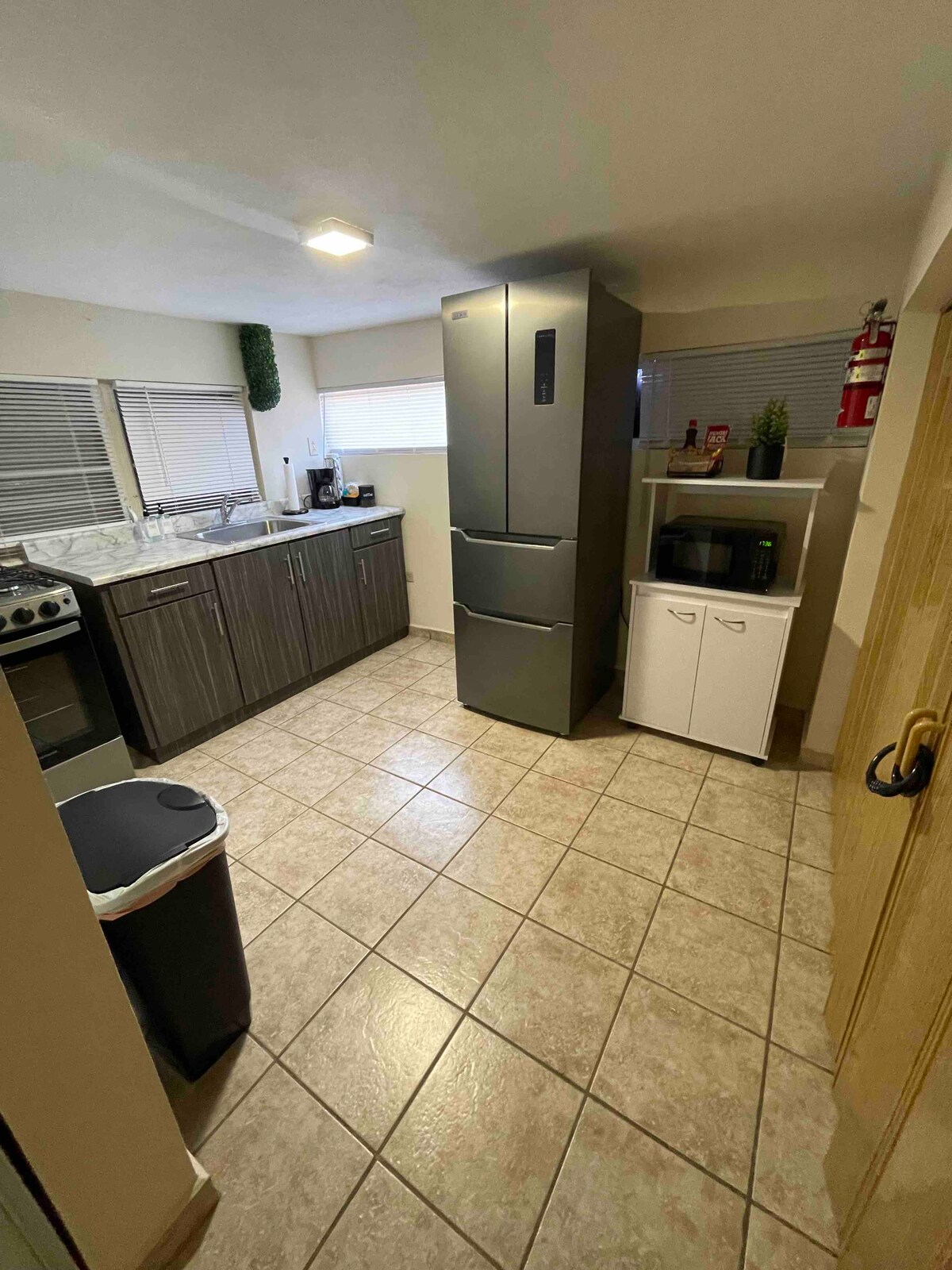 New to Aguadilla- Beautiful Renovation and 10 Minutes from everything! Close to beaches, airport and the #2. This home features a tranquil garden soaking tub, a full kitchen, and a master bedroom with a king-size bed and private bathroom. The second bedroom offers a queen-size bed, and the third bedroom features two queen-size beds. Smart TV's in every room and HIGH SPEED WIFI. The property is fenced all around and is great for a family to come and relax.
