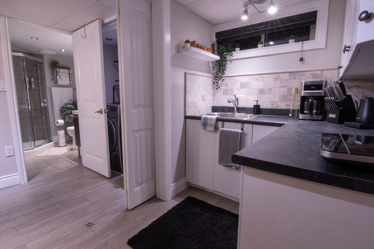 Ontspan en kom tot rust in dit ruime moderne kelderappartement. Dit prachtige onlangs gerenoveerde kelderappartement is gelegen in een rustige woonwijk in de buurt van verschillende basisvoorzieningen. Dit comfortabele thuis weg van huis ligt op enkele minuten afstand van het prachtige Gatineau Park en op slechts een klein stukje rijden van de hoofdstad. Veel lokale restaurants, winkels en parken bevinden zich allemaal binnen een straal van 5 km. Je hebt alles wat je nodig hebt voor een perfect verblijf tijdens een bezoek aan de omgeving van Ottawa/Gatineau.