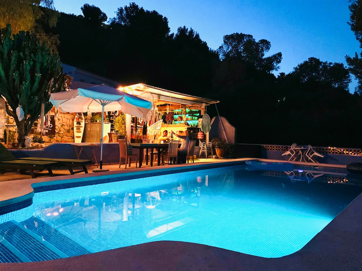 This is a flex hosted (cowork coliving) country posada with Concierge. Chef Angela and Christian Ras & 4 rescue dogs. Guests reside in a separate private 3BR villa. Two floors, full kitchen, yoga decks, jacuzzi, icebath, XXL swimming pool etc. Local concierge offering tips, advice, information. Absorb Spanish culture. AMENITIES ❄️Ice Bath 🗿Tiki Bar & XXL Pool 🌊SUP BOARDS 🥊Boxing Bags 🔥Wood Fired Jacuzzi, 🧘♀️Yoga Decks 🧑🏼🍳Private Chef Service 🤿 Dive 🎧Arts & Music