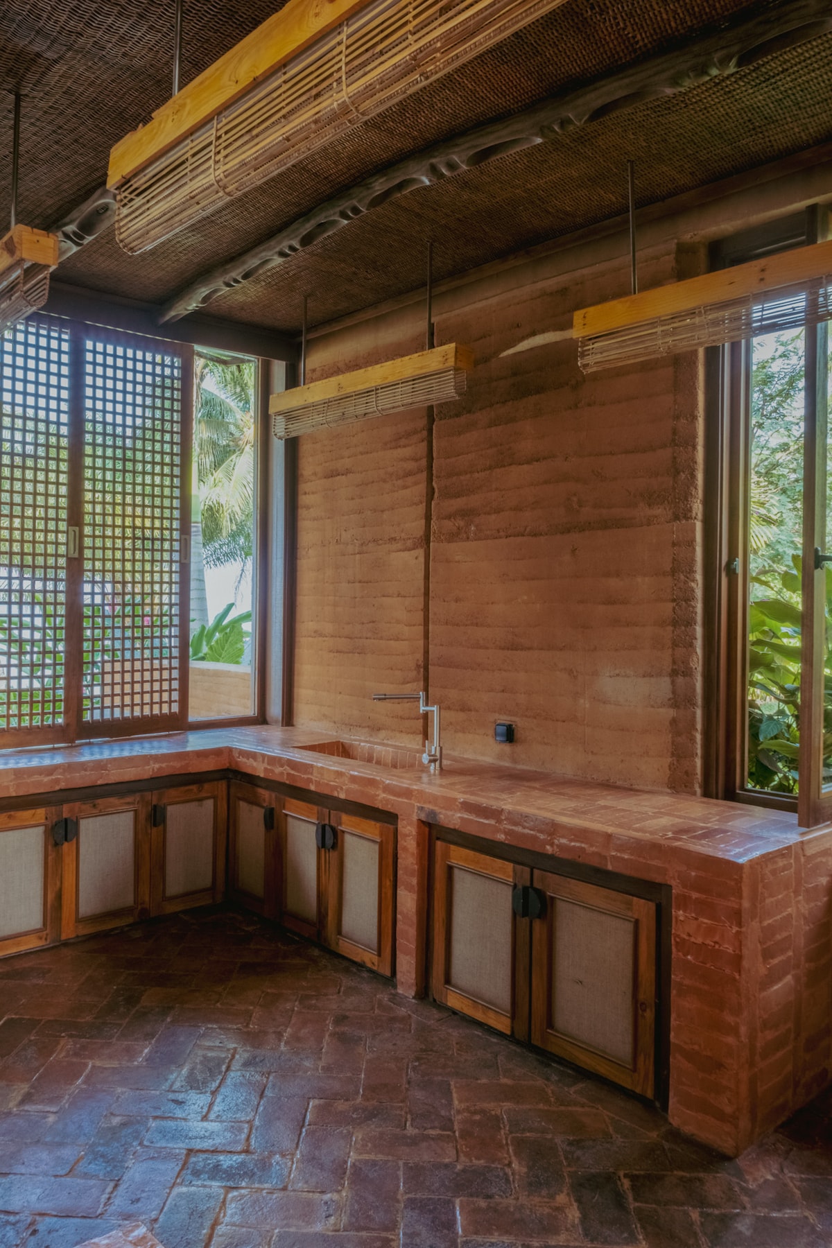 Het Essoa Pavilion ligt aan de rand van de lagune en in een botanische tuin van 7.500 m². Het is een atypische en tijdloze villa, die natuurlijke materialen, eigentijds design en ecologische autonomie combineert. De open ruimtes, beplante patio's en gebogen dak bevorderen licht, ventilatie en harmonie met de natuur. Discrete en verfijnde luxe, ontworpen als een meeslepend en rustgevend toevluchtsoord in het hart van Jacqueville, Ivoorkust Ontwerp: Moyésoa Laboratory