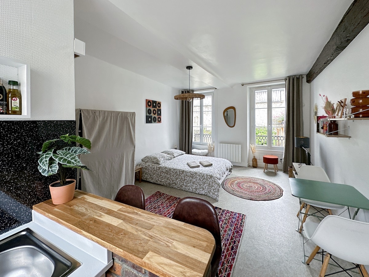 Bienvenue ! Posez vos bagages dans ce charmant duplex entièrement rénové au sein d’un immeuble du 18ème siècle en plein cœur du centre historique de Caen et mettez-vous au rythme de l’art de vivre à la française ! Pierres apparentes, cheminée, porcelaine de Limoges et une vue magnifique sur les clochers de la célèbre Abbaye aux Hommes vous transporteront à l’époque de Guillaume le Conquérant tout en vous offrant le confort d’un appartement moderne.