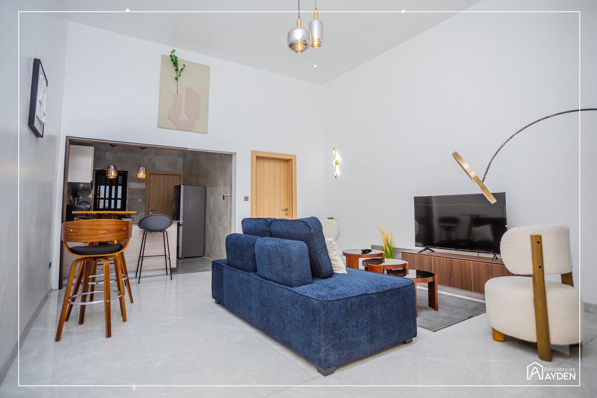 Welcome to this modern and spacious studio apartment in Cotonou— your perfect home away from home in a quiet, safe neighborhood. Enjoy a fully equipped kitchen, a cozy living area with comfy sofas and a smart TV, a dining table, and a private bedroom and bathroom. The space is bright, clean, and thoughtfully designed for relaxation or work. This beautiful appartment is pnly a short drive from the airport, it's close to upscale restaurants in Haie vive and also near supermarkets and shops