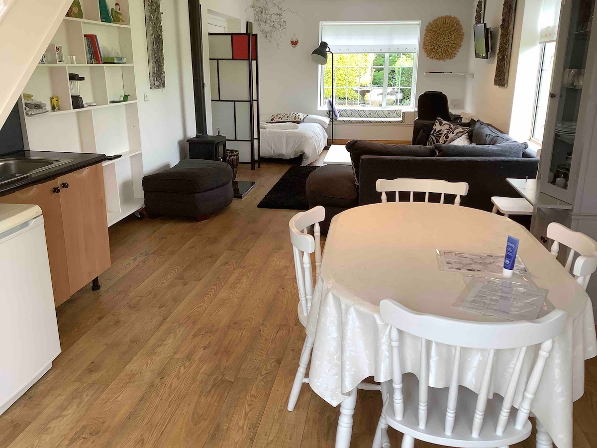 Mooi, licht, luxe zelfstandig appartement grenzend aan ons huis. Eigen ingang en privéparkeergelegenheid. Een slaapkamer boven met zeer comfortabel tweepersoonsbed, slaapbank beneden in de woonkamer voor twee personen. Badkamer is boven ,elektrische douche en heerlijke frisse zachte handdoeken.USB oplaadpunten en wifi overal. Houtkachel in de woonkamer om je verblijf gezellig te maken! ALLEEN GERESERVEERDE GASTEN ZIJN TOEGESTAAN OP DE ACCOMMODATIE. Prachtig platteland 1,2 km buiten het dorp Adare
