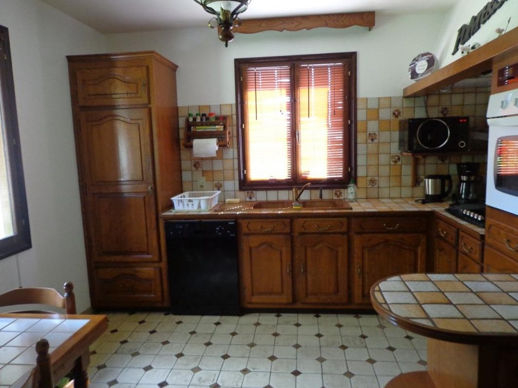 Zelfstandig landelijk huisje van 210 m² op eigen terrein van 4800 m² volledig omheind en bosrijk, rustig gelegen. Het heeft op de begane grond: 1 ingang, 1 ingerichte en uitgeruste keuken, 1 woonkamer, 1 badkamer, toilet, 1 biljartkamer, 1 wasruimte, 1 grote slaapkamer (1 bed 1,60 m en 1 bed 0,90 m), 1 slaapkamer (1 bed 1.40) , 1 veranda en een garage; boven: overloop (1 clic-clac), 1 slaapkamer (1 bed 1,60 m, tv), 1 slaapkamer (3 bedden 0,90 m, tv) met badkamer (douche, toilet, 1 wastafel).