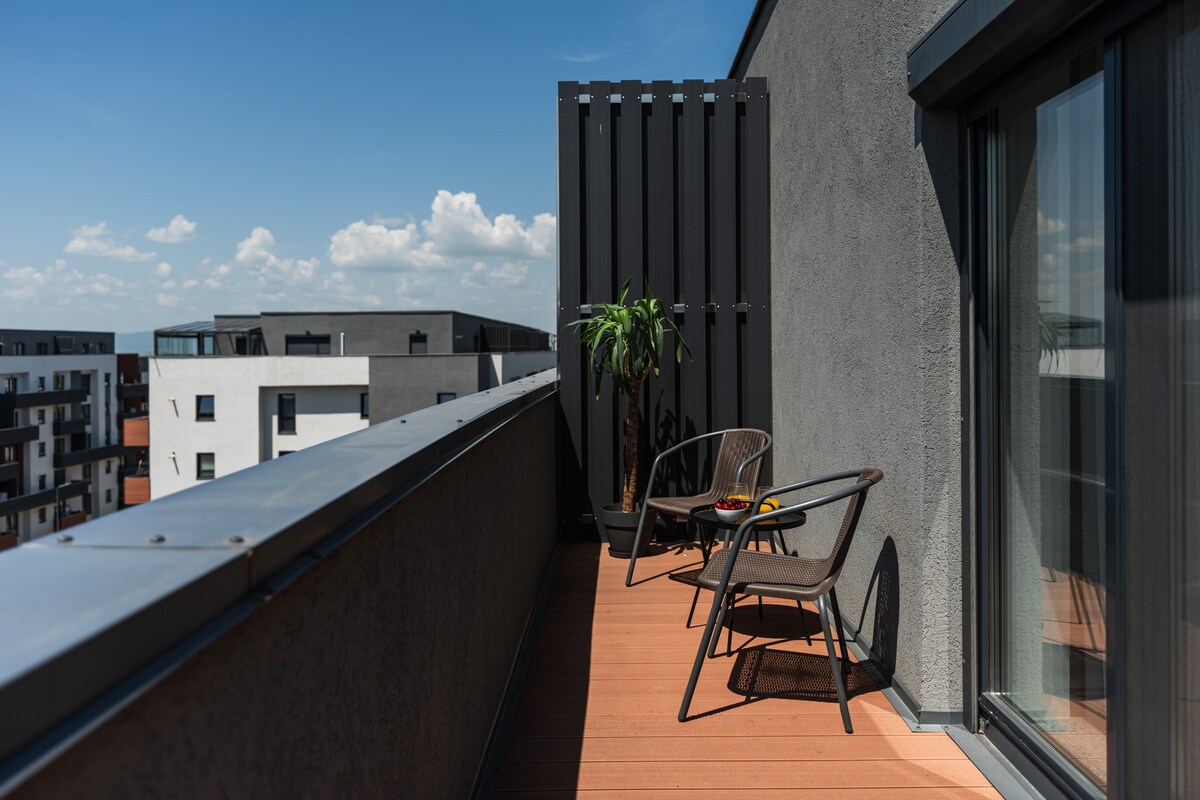 Ultramodern fully equipped apartment with private parking and smart lock for check in / check out. It is located in brand new residential area - Cartier Coresi, near the Coresi Shopping Resort, at 10 minutes from the historic center. It has a bedroom with queen size bed, living room with expandable sofa bed, fully equipped kitchen, air conditioning, large terrace with hammock, washing machine / dishwasher, two 4k TVs with Netflix and HBO Go.