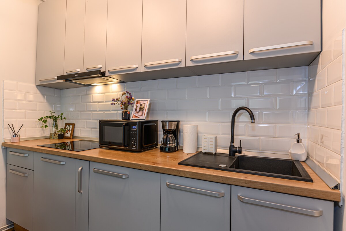 Gelegen in het stadscentrum, Studio , 35 m ² ,bestaande uit slaapkamer met groot tweepersoonsbed, eigen badkamer en keuken. Ideaal voor stellen of één persoon. De maximale capaciteit is twee plaatsen. De keuken is uitgerust met elektrische kookplaat, magnetron, waterkoker, waterkoker, koffiezetapparaat, koffiezetapparaat, koelkast . Gratis wifi, tv. Onze gasten hebben gratis toegang tot de fitnessruimte. Parkeerplaatsen voor het gebouw zijn gratis.