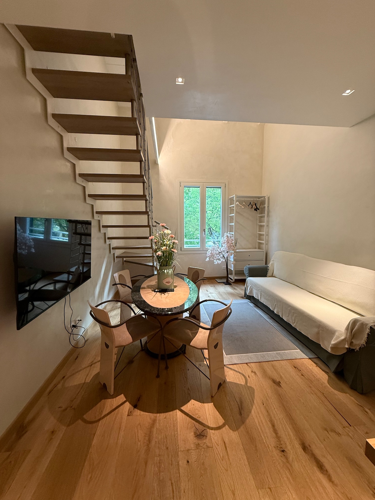 This was my 𝗯𝗿𝗶𝗴𝗵𝘁 family apartment on the 𝗲𝗱𝗴𝗲 of the historic 𝗰𝗲𝗻𝘁𝗲𝗿. It’s on the 𝟱th and 𝘁𝗼𝗽 𝗳𝗹𝗼𝗼𝗿 of a small building (elevator to the 4th floor + one flight of stairs) in a quiet residential area. For me, it’s a calm corner with a view of the hills and the rooftops. We renovated it recently, keeping the warmth of a real home, hoping you’ll feel part of the city. The sunsets from the entry window are a small extra touch — something I hope will stay with you. ---