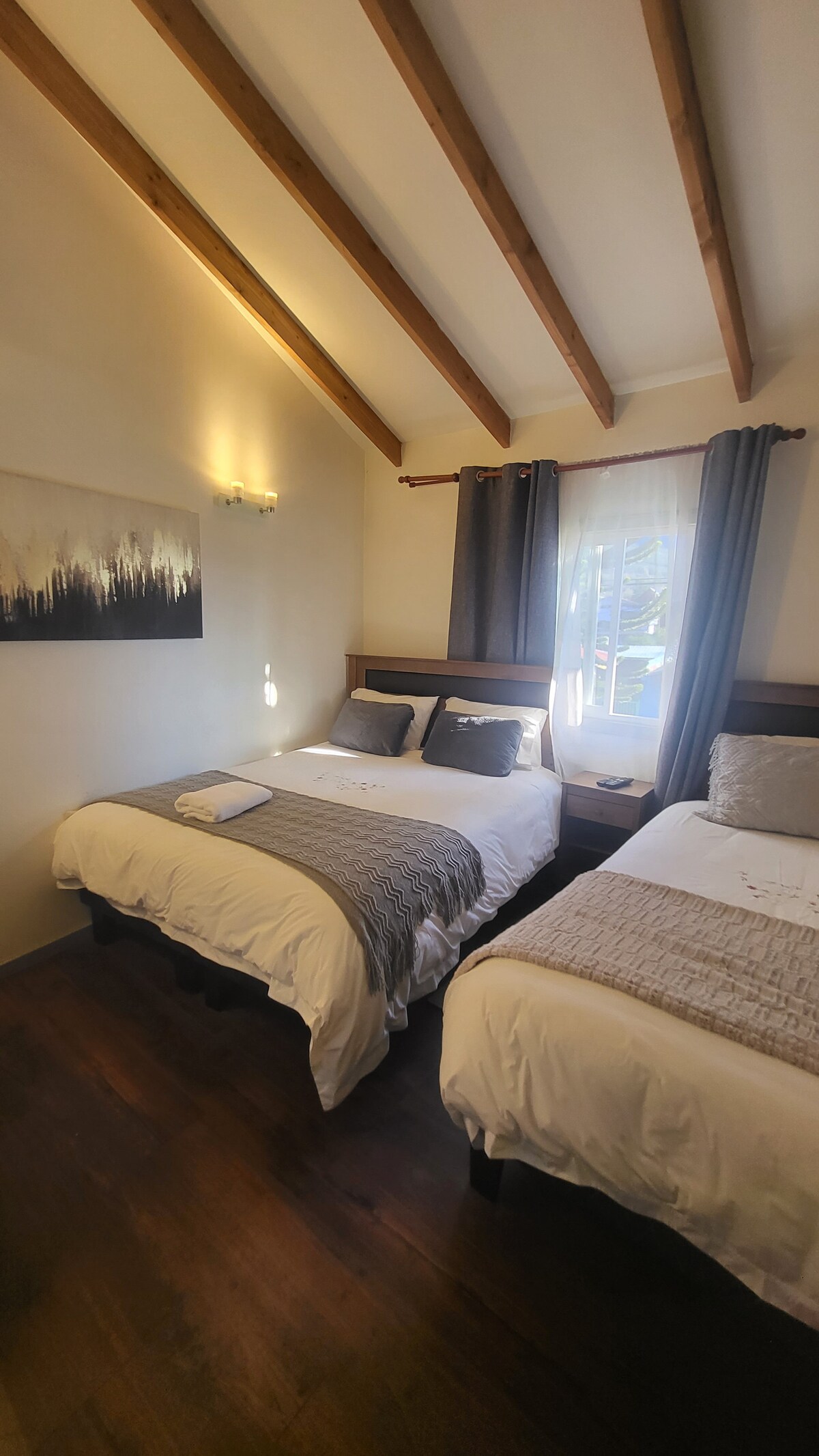 Disfruta de este alojamiento, todo el grupo podrá disfrutar del fácil acceso a todo. El alojamiento cuenta con: TV, WIFI, refrigerador, parrilla con sus utensilios, además de una zona cómoda para charlar, la calefacción es con estufa a parafina (tiro forzado) para que la combustión no se genere en el interior de la casa, adicionalmente cuenta con calefacción eléctrica, por último, cuenta con una cocina con todos los implementos, como horno y demases (todo nuevo) para una excelente estancia.