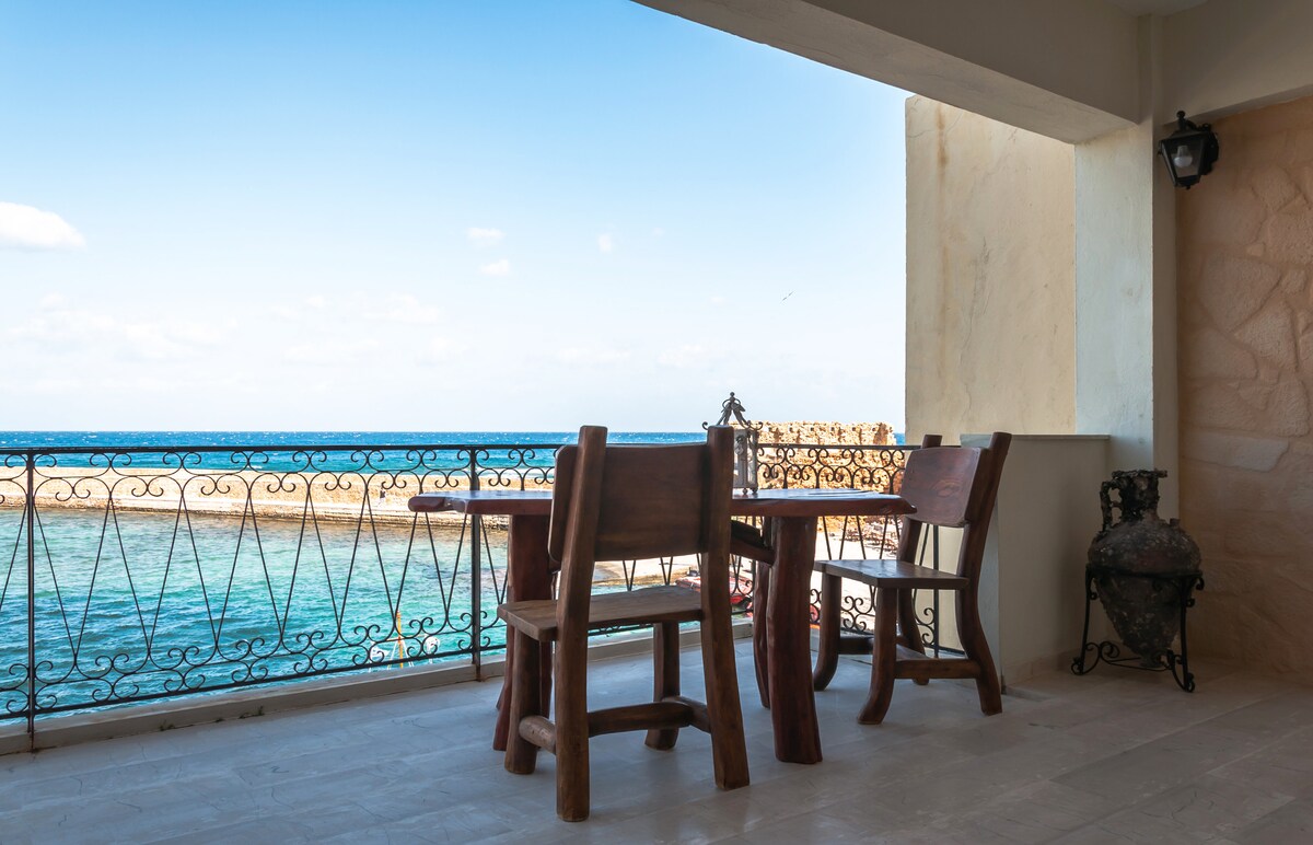 The Domicilechania "Venetian Residence" was built in the14th century and is known as the Venetian Rectors Palace. It was also used as the Treasury and the Archives of the Venetian administration. Overlooking the old harbor and the Venetian lighthouse its view is unique. Ideal for one or two couples or families with max. 3 children. The Venetian Residence is the ideal spot to explore the old city of Chania but also the countryside of the region. The nearest beach is 10 min. on foot.