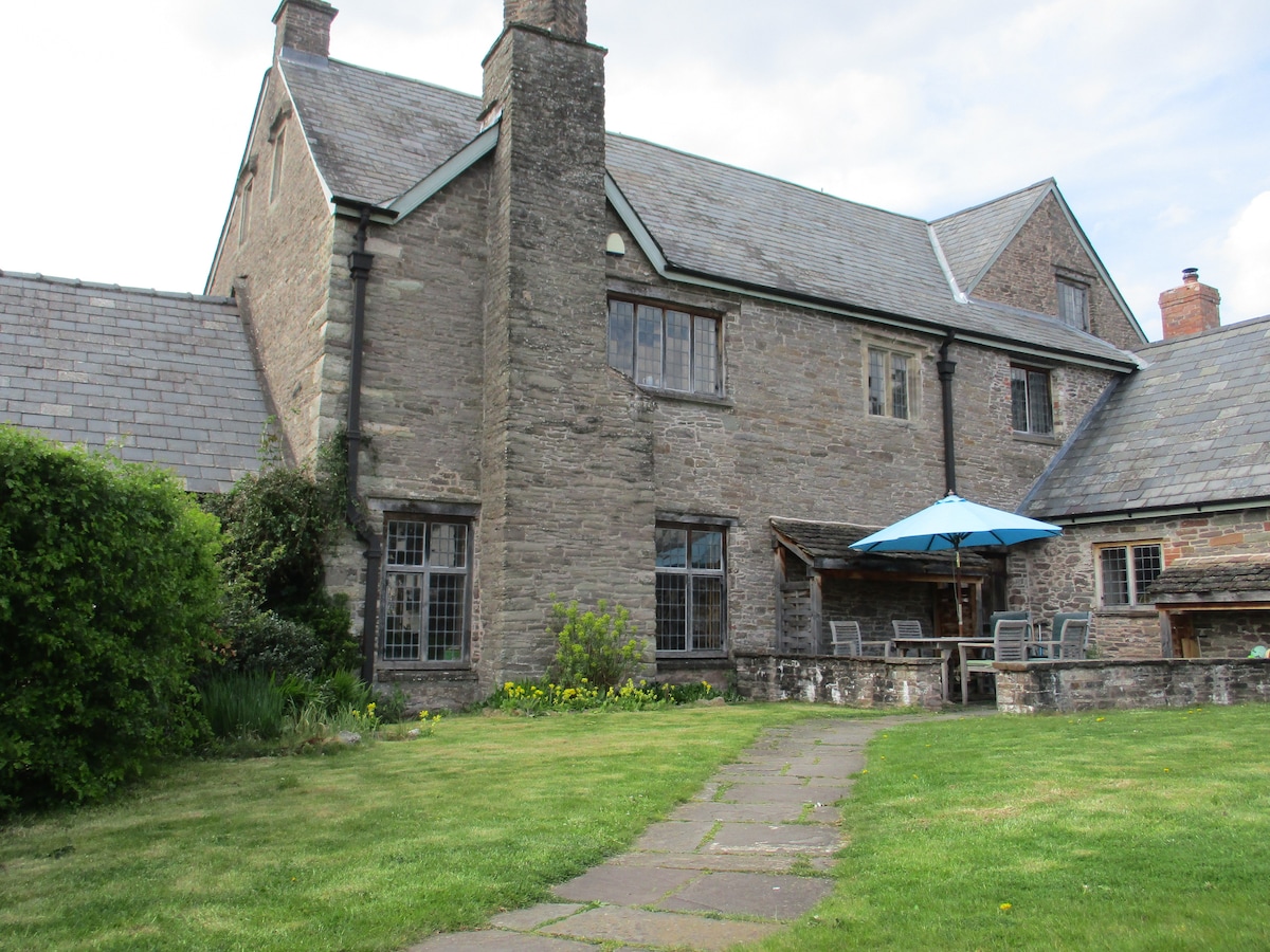 Cosy recently renovated duplex suite with private entrance at the rear of historic house with sitting room, bedroom above, loo & shower room. NO KITCHEN but there is a fridge, microwave, toaster, kettle & Nespresso machine. In 20 acres of grounds with stunning views. Crickhowell High Street is 10 minutes walk . Direct access to footpaths to the River Usk from the property & mountain walks to Table Mountain and beyond just across the road. Secure parking & bike storage.