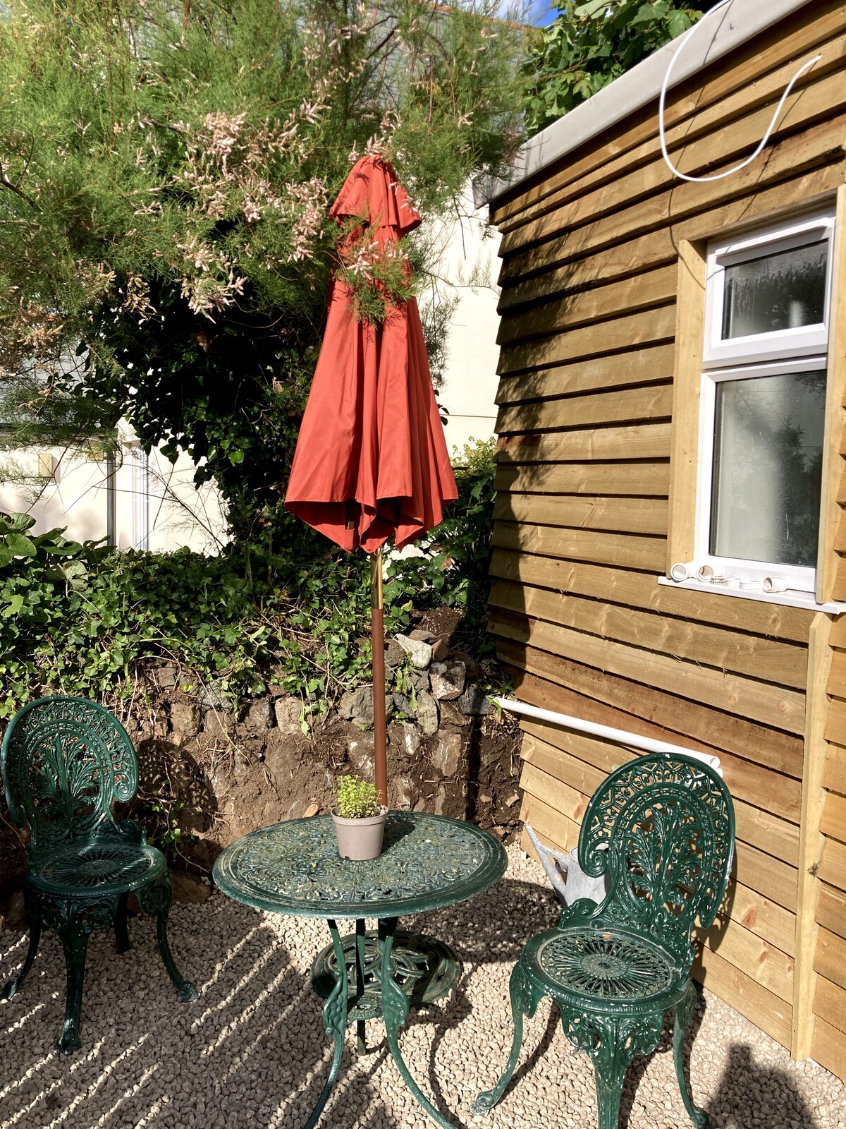 Een zelfstandige garageconversie bestaande uit - Slaapkamer (tweepersoonsbed), badkamer, gezellige leefruimte met houtkachel. Keuken met kookplaat (geen OVEN), air fryer, koelkast, waterkoker en magnetron. Thee/koffie/melk en wat ontbijtartikelen (brood/ontbijtgranen) zijn aanwezig. Net als handdoeken en beddengoed, toiletrol en handzeep. Buiten zithoek met uitzicht op het platteland. 5 minuten lopen naar kustpad. Schilderachtige dorpspub met prachtig uitzicht op zee op loopafstand. Helaas staan we geen huisdieren toe.