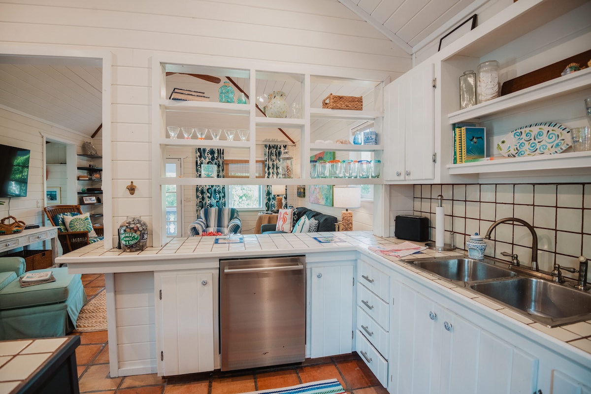 Great Abaco in The Bahama 's is de thuisbasis van Schooner Bay, een havendorp dat is ontworpen en gebouwd met behulp van duurzame praktijken en materialen. Een beschermde havenjachthaven, rustige stranden, eco-avonturen, oneindig vissen en watersporten – het is een gekoesterd buitenleven dat het authentieke Bahamaanse dorpsleven en zijn buitengewone natuurlijke omgeving viert. Dit schilderachtige huisje heeft twee slaapkamers en twee badkamers in het hoofdhuis. Er staat een queensize bed in de master, twee tweelingen in de kamer.
