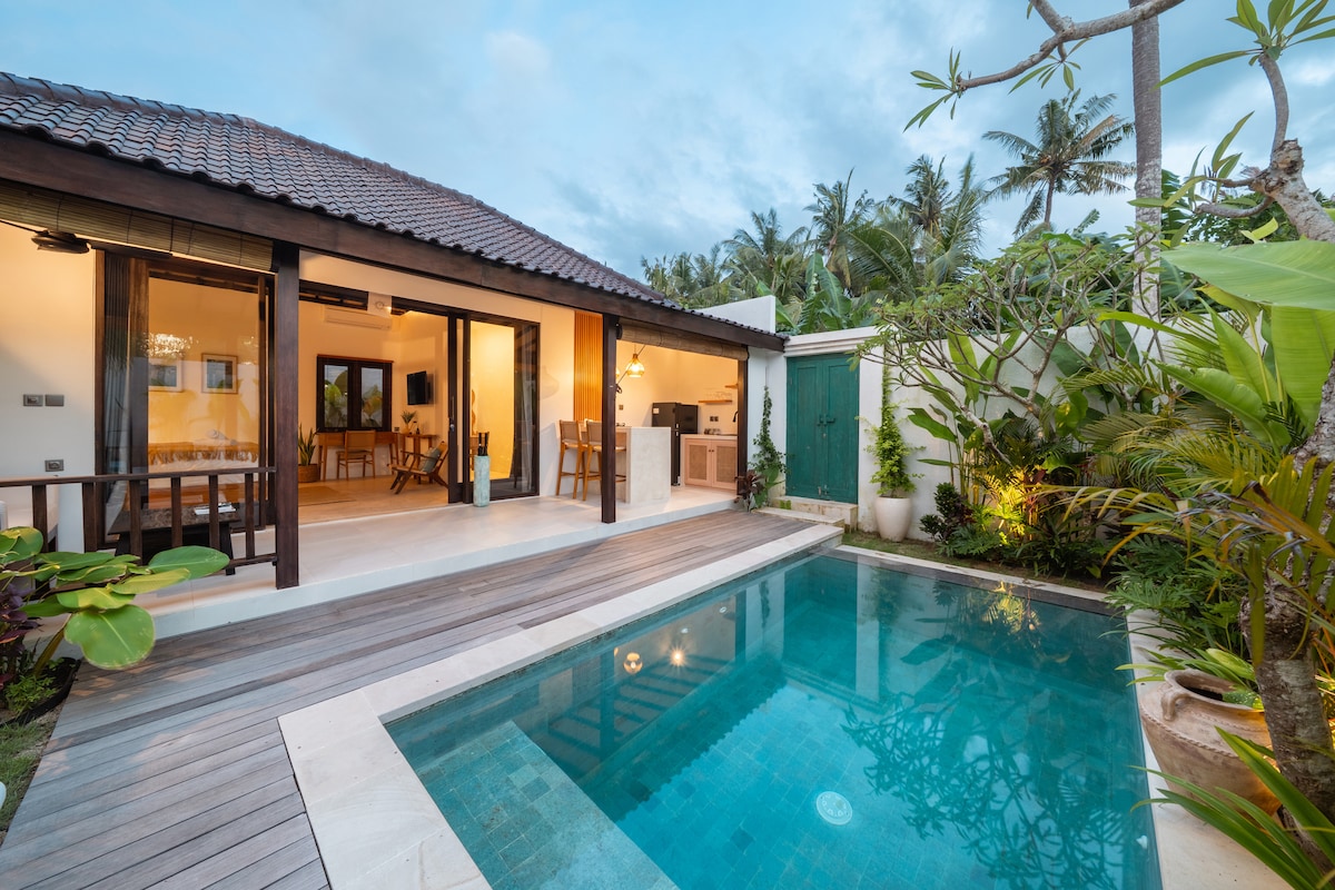 Welcome to Villa Dwipa ☀️ A place where you can indulge yourself in the beauty and luxury of a completely private Bamboo Villa and all it’s facilities surrounded by peaceful nature 🍃 From a dive in the private pool, watching a movie on the drop down cinema screen and having a neighbor-less party in the living room to spending peaceful quality time, cozily unwinding on the balcony and everything in between, whether you're friends or lovers, we guarantee you a good time 😊