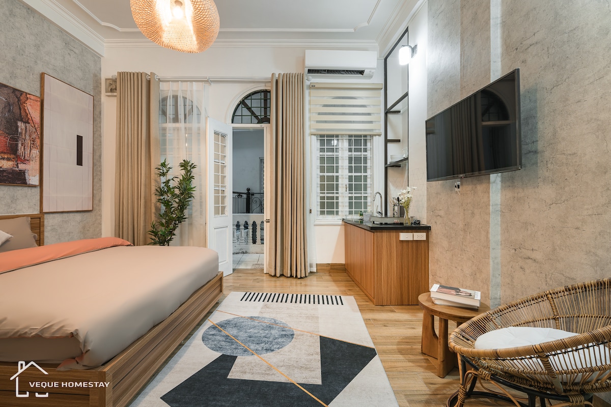Ontdek een schat aan een grote straat in het district Hoan Kiem. De kamer ligt vlakbij de oude stad en baadt vanuit een groot raam in natuurlijk licht en creëert een gezellige sfeer. De geluiden van verkopers en aroma's uit de bruisende straten dragen bij aan de levendige charme. - 7 m lopen naar de oude wijk, -10m naar het treinstation van Hanoi -20 minuten naar de avondmarkt. -stift - Gratis wasmachine en droger - Beroemd restaurant en cafés in de buurt - Volledig uitgeruste keuken - Netflix - Simkaart te koop
