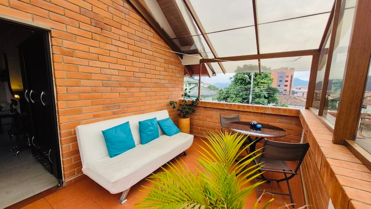 Descubre un espacio lleno de luz, calidez y confort en este penthouse con terraza panorámica, ubicado en una zona residencial tranquila y segura, a pocos minutos del centro histórico de Cuenca. Espacio con techo de madera, cama cómoda, Wi-Fi rápido y escritorio, ideal para quienes buscan combinar descanso con productividad. La terraza privada cubierta es el rincón perfecto para disfrutar de un café por la mañana, leer, o contemplar los atardeceres sobre el Balcón de Turi.