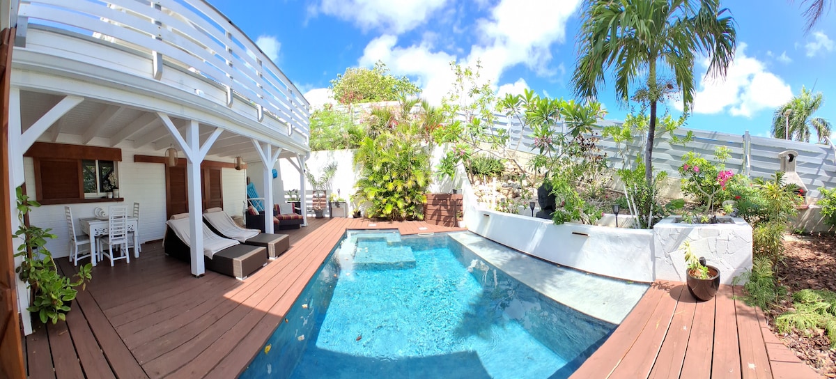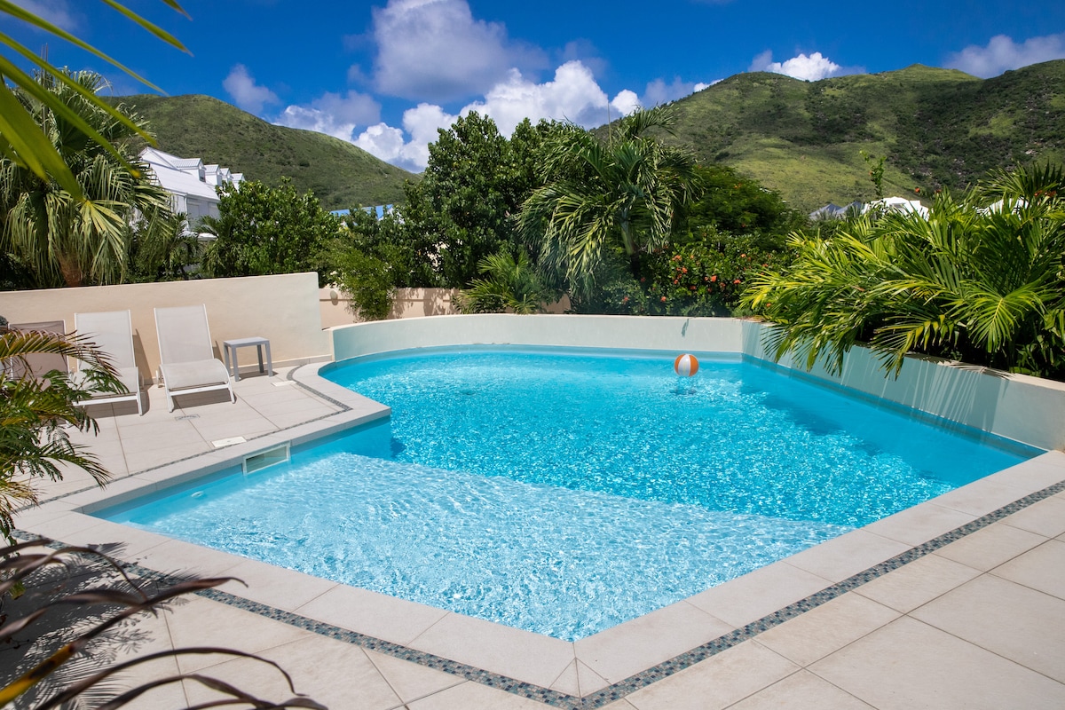 Charmant appartement met uitzicht op Pinel Island. In het hartje doodlopende straat. Tussen Orient Bay & Grand Case, de twee must-see stranden op ons eiland voor zijn eten. Onvergetelijke ervaring voor je smaakpapillen onder wit zand en turquoise zee. Nieuw appartement, volledig onafhankelijk van het 'huis van de eilanden'. Ruime en comfortabele suite. Tweepersoonsbed. 100% katoenen beddengoed en handdoeken. Aparte toiletten. Een stap tussen de woonkamer en het zwembad en gemeubileerd terras. Eigen ruimtes.