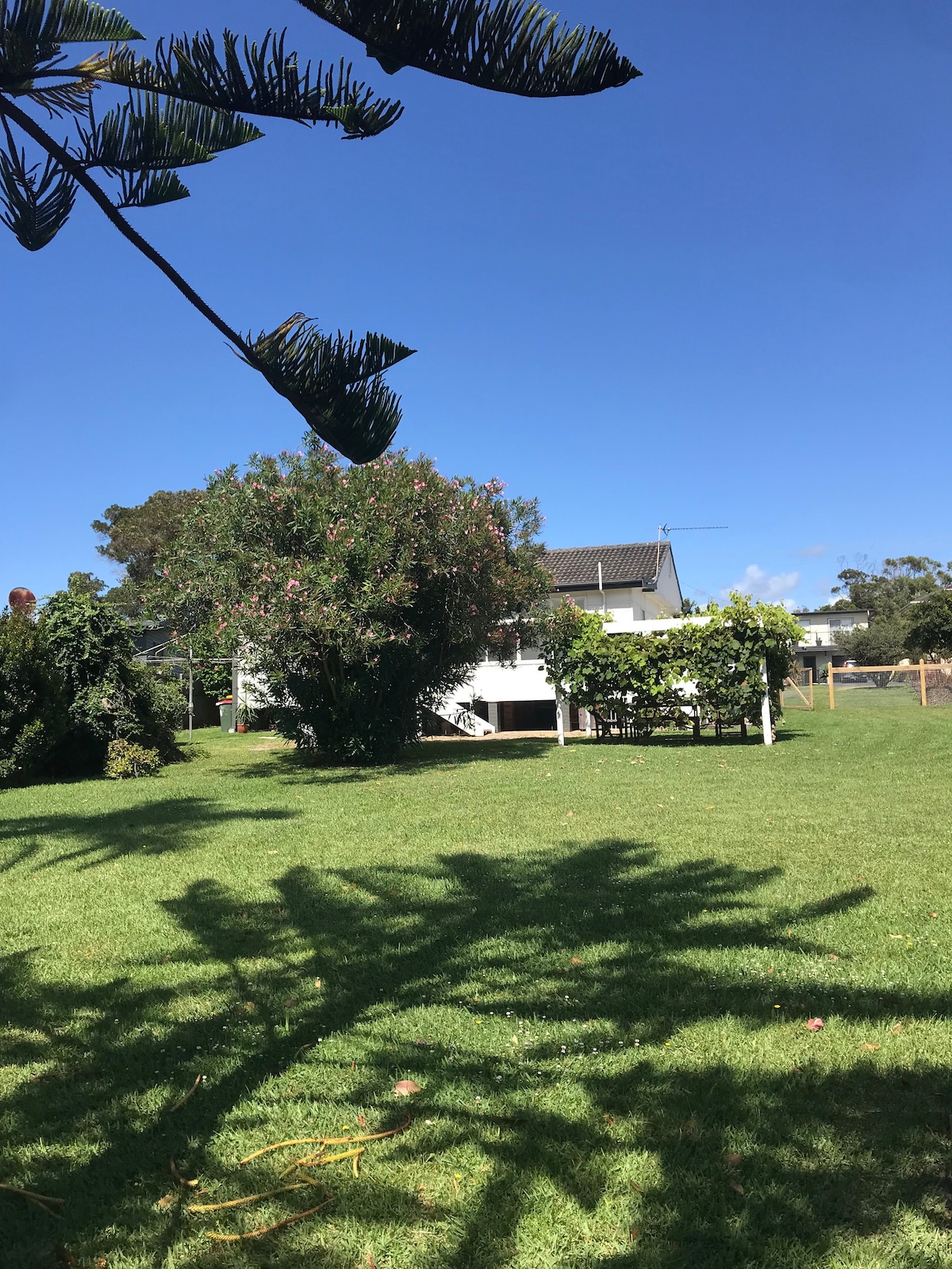Een zeer populaire Airbnb gelegen aan Nelson Beach. 3 minuten rijden naar Coles en lokale winkels, waaronder Phoebe's Kitchen. Helaas niet geschikt voor kinderen. Geen huisdieren. Je bevindt je in een accommodatie die grenst aan een natuurgebied, de thuisbasis van veel vogels, kangoeroes en af en toe een mierenegel. Geniet van de ruime achtertuin met een geweldige vuurplaats! De White Sands Walk naar Hyams Beach ligt voor de deur. Het is een must do! Volg ons op Nelson's Oasis Jervis Bay