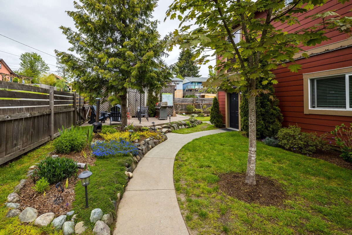 Welcome to historic Bridal Alley Cumberland! Enjoy your stay in our guest house equipped with bike storage and a flowery outdoor patio for kicking back after a long day exploring the Valley! Bike or walk to 200 kms of trails. Head to the lake for a swim, paddle or sunset. Or wander home from the local brewery or other amazing dining options on the vibrant Main Street of Cumberland. We can’t wait to host you on our 1896 home. We’d love to recommend our favourite trail or ocean sunset spot!