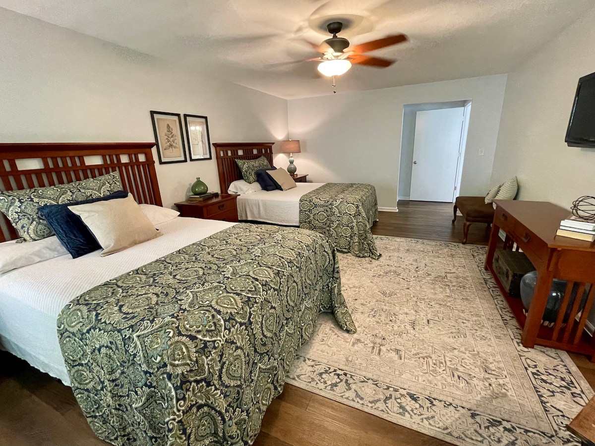 Deze onlangs gerenoveerde ruimte is de perfecte plek voor al je reisbehoeften. Het is van alle gemakken voorzien! Een comfortabele woonkamer, kabel-tv, internettoegang, volledige keuken gevuld met alle benodigdheden, een bureau voor een handige werkruimte, 2 queensize bedden, volledig bad, grote patio en voldoende parkeergelegenheid.