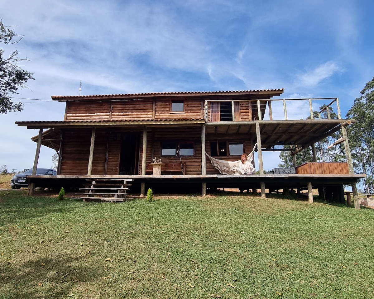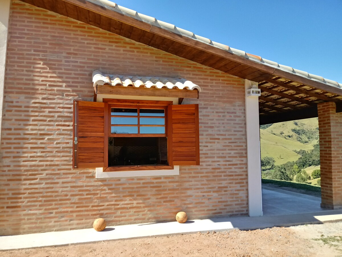 Casa de roça lindinha para dois casais que queiram descansar, dormir em uma super cama quentinha, curtir lareira, curtir andar, rede, paz...... Sao dois quartos, com muito conforto, camas queen com lençois de 400 fios, travesseiros e edredom de plumas, toalhas felpudas, e banho bem quentinho a gas. Cozinha para uma comidinha, caso queiram, utensilios para cafe da manha, podendo requisitar com antecedencia leite, queijo,mel e paes da roça, para um bom começo de dia. Lareira, redes e tudo mais