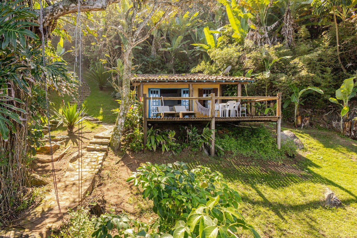Casinha charmosa e aconchegante de costeira, construida em harmonia com a natureza e o mar. É um verdadeiro paraíso para quem busca sossego, exclusividade e privacidade. O acesso direto ao mar pela costeira é uma raridade na Ilhabela e esse privilegio é apenas para os nossos hospedes. Esse acesso é feito por escadas confortaveis onde temos um deck de madeira com ducha. A casa é cercada pela mata original que é residencia de uma grande variedade de passaros e animais silvestres.