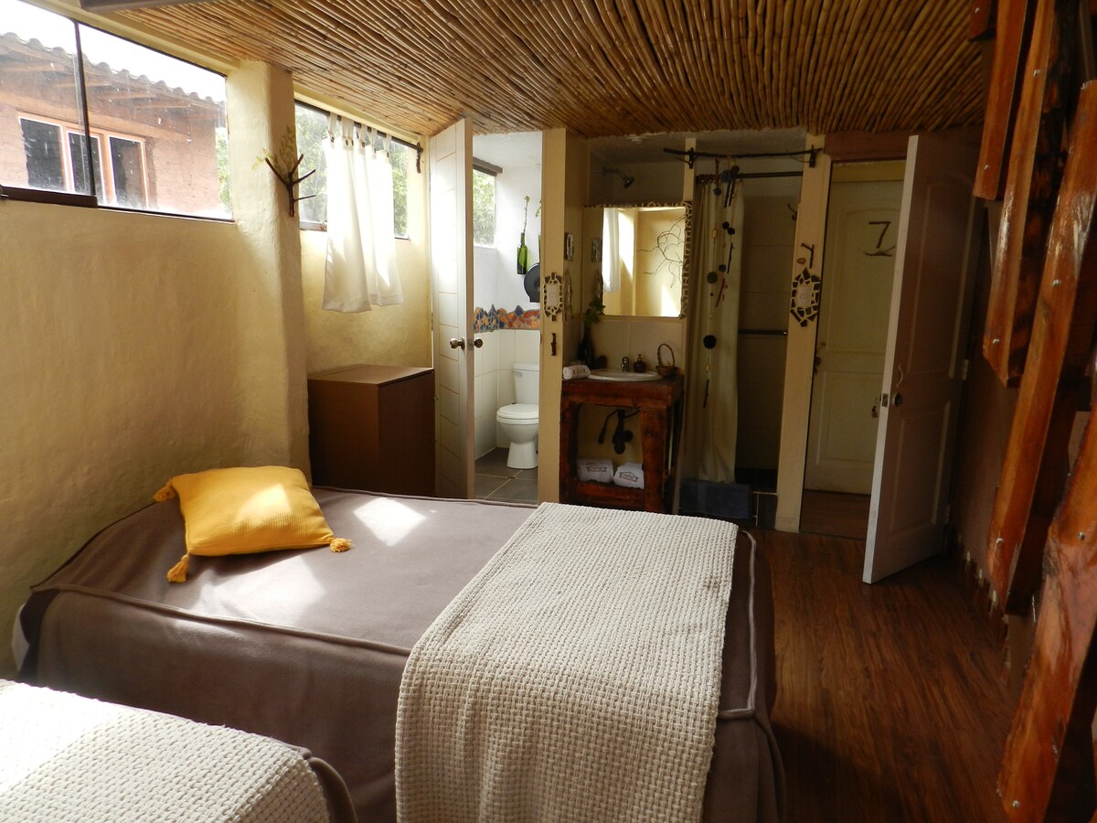 Een magische plek in Andahuaylillas Cusco, met solide principes in het behoud van de agrarische traditie van de Andes, het duurzame gebruik van hulpbronnen en de bescherming van het milieu. Gebouwd met creativiteit met behulp van natuurlijke hulpbronnen uit het gebied en gerecyclede elementen, waardoor ze waarde krijgen in hun transformatie, waardoor aankopen worden verminderd. Afval zorgvuldig gesorteerd en omgezet in grondstoffen (nul koolstofvoetafdruk).