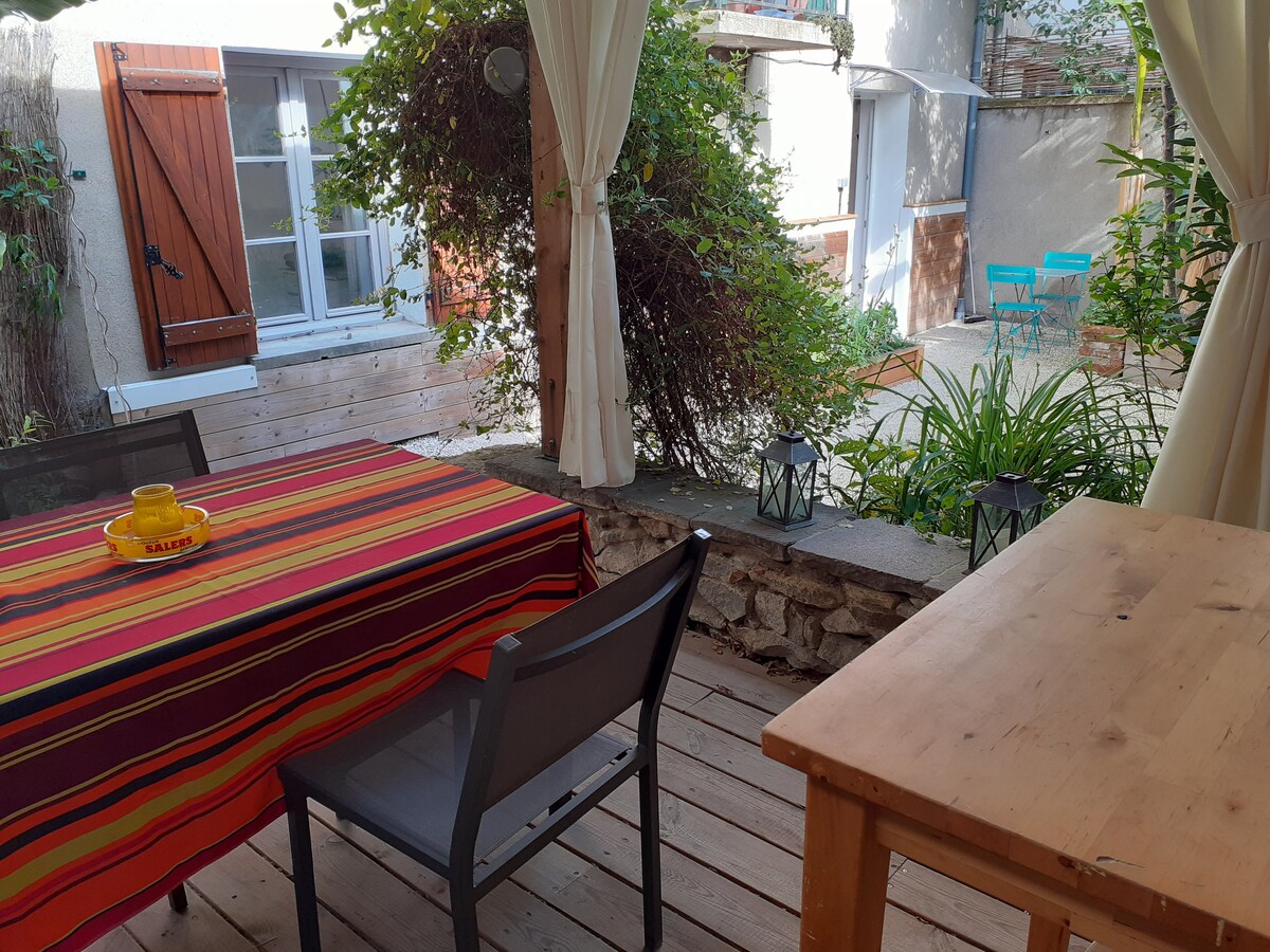 55 m2 appartement op de begane grond, volledig gerenoveerd, met eigen binnenplaats ingericht. Het bestaat uit: 1 ingang, 1 woonkamer 18m2 (slaapbank voor een tweepersoonsbed in 140x200, tv 127cm, bureau...), 1 volledig uitgeruste eetkeuken (vaatwasser, Nespresso-apparaat, een waterkoker, een waterkoker, een oven, een magnetron, een gaskookplaat met afzuigkap...), 1 slaapkamer van 17 m2 (bed 160 x 200), 1 badkamer met wastafel, douche, handdoek en toilet . Nieuw beddengoed met kussens en Emma® matrassen