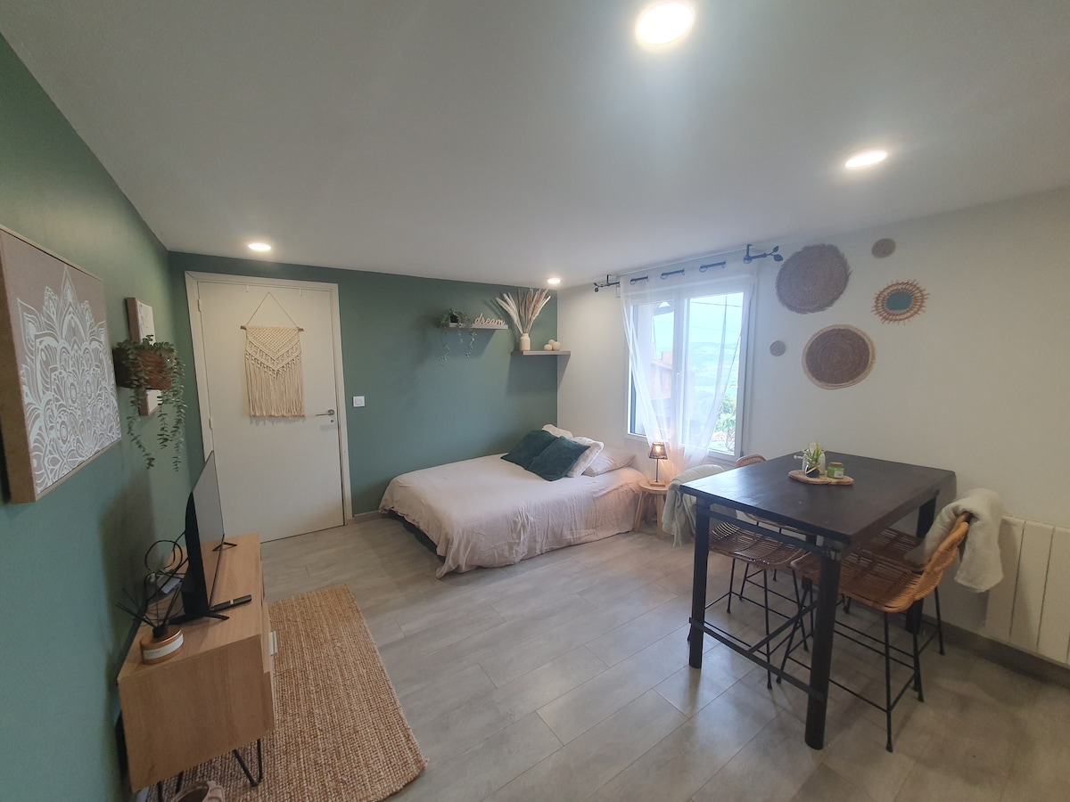Grote studio van 32 m2 op de tuinverdieping van het huis van de eigenaar. Onafhankelijke ingang, rustig voorzien door de landelijke omgeving (het huis kijkt uit op velden), zeer aangenaam uitzicht op de Semnoz-berg (beroemde plek voor paragliders die over het huis passeren, omdat de landingsplaats op 300 m afstand ligt). Deze volledig uitgeruste studio, ingebouwd gekookt en badkamer met douchecabine, is in 2016 volledig gerenoveerd. Het is perfect voor 2 of 3 (1 stel met 1 kind)